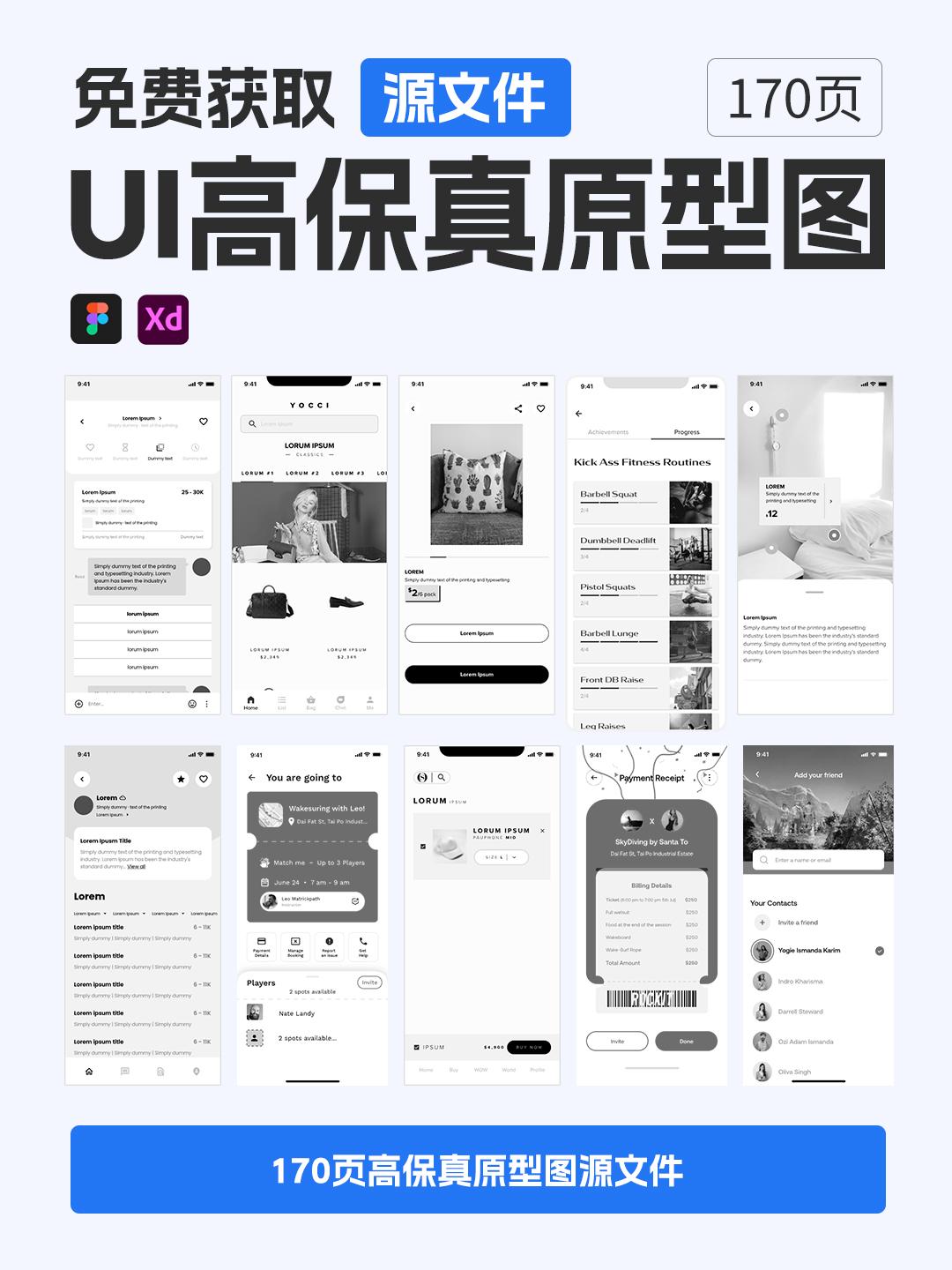 170页UI高保真原型图 | APP原型图figma、xd源文件