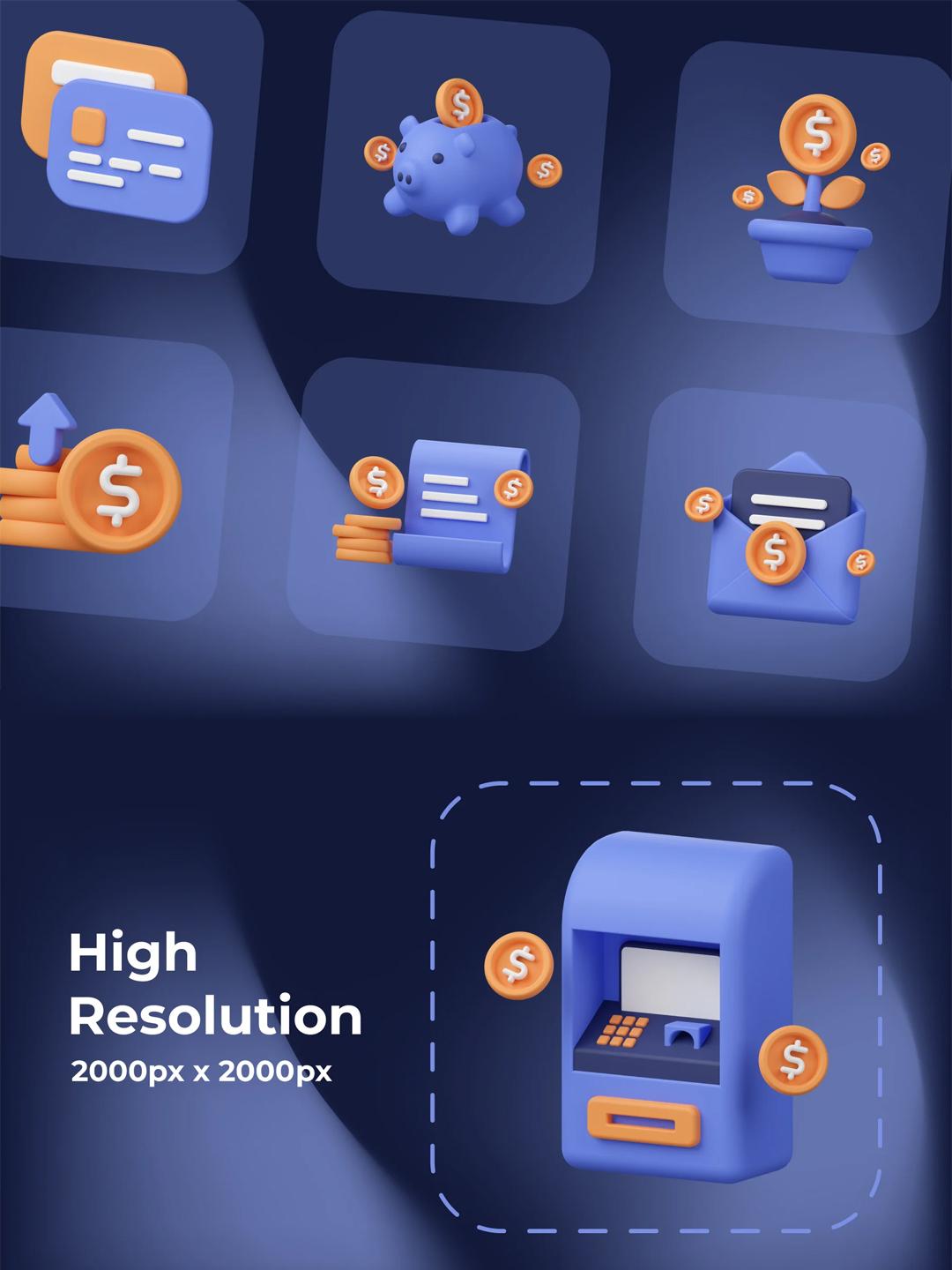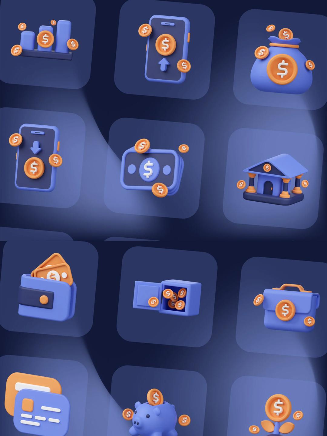 20个钱包理财图标设计 | 3D金融类ICON设计 | blender png