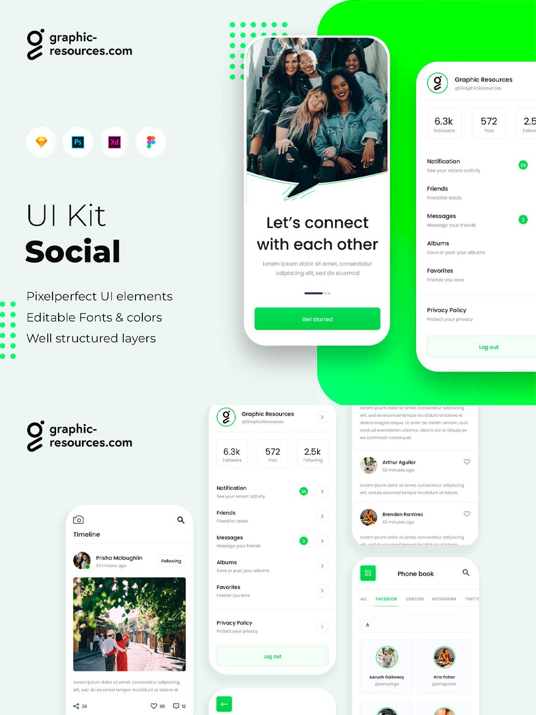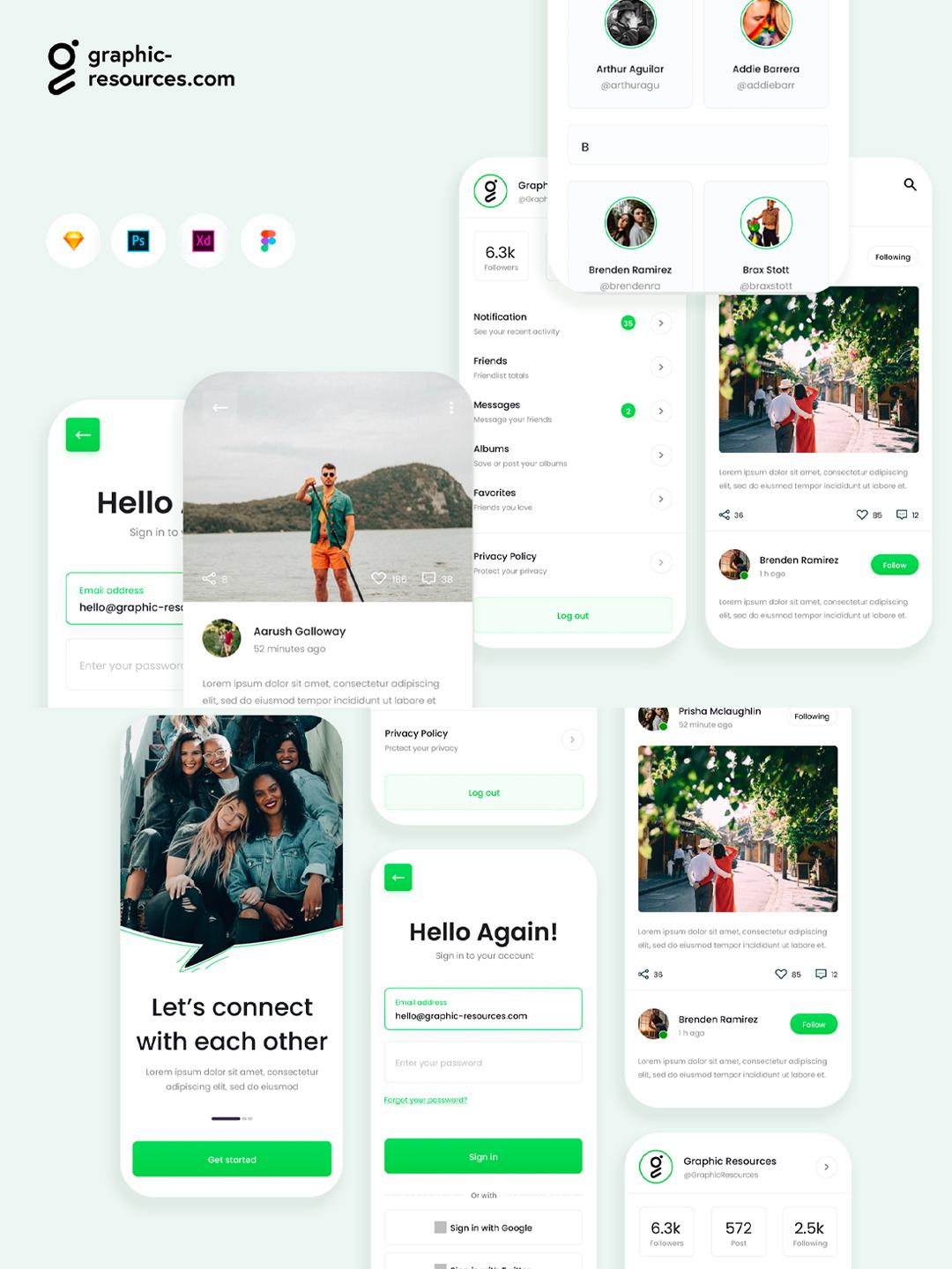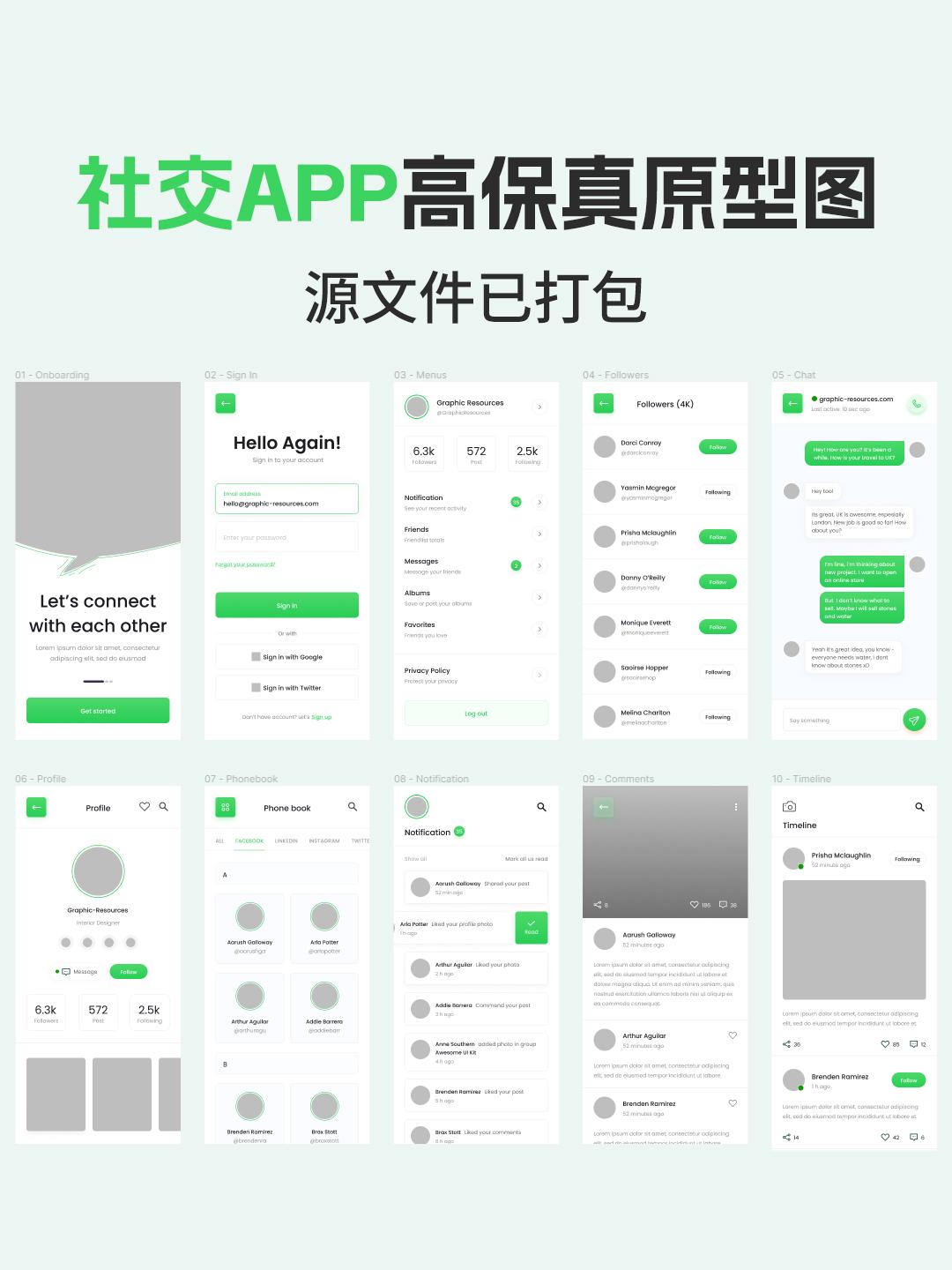 10页社交APP设计 | UI高保真原型图sketch、ps、fig、xd源文件