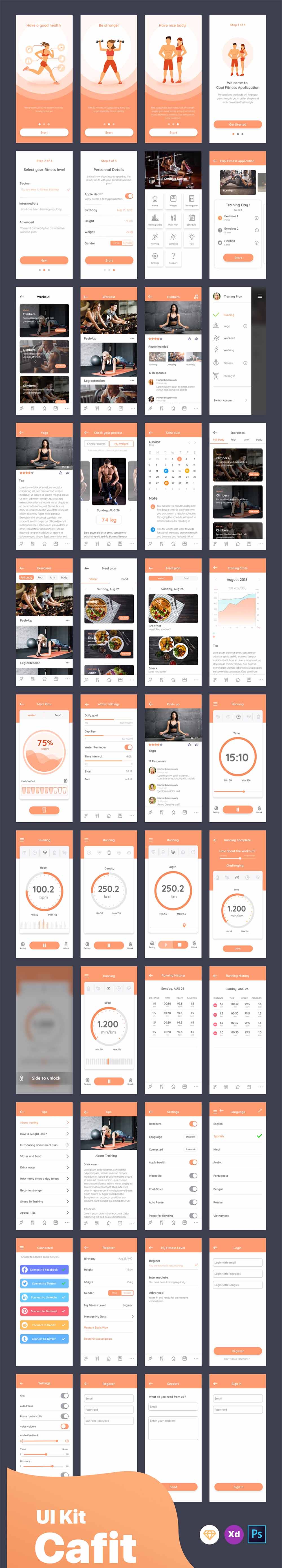 成套健身app ui模板 cafit workout uikit .psd .sketch .xd素材下载