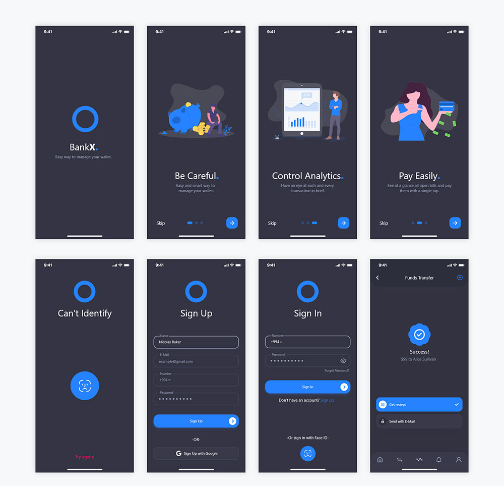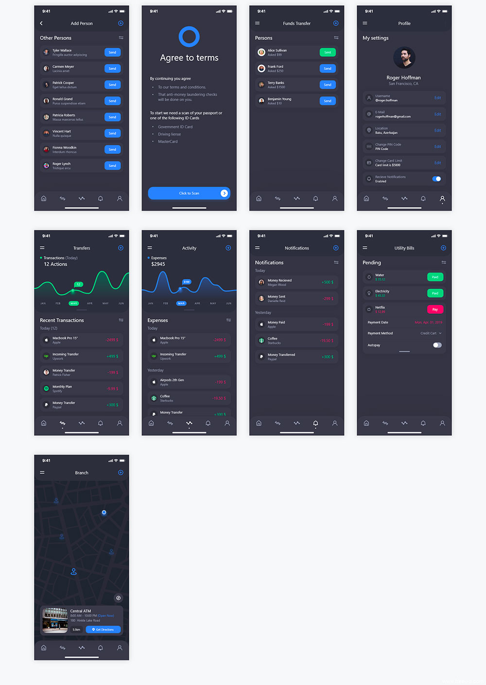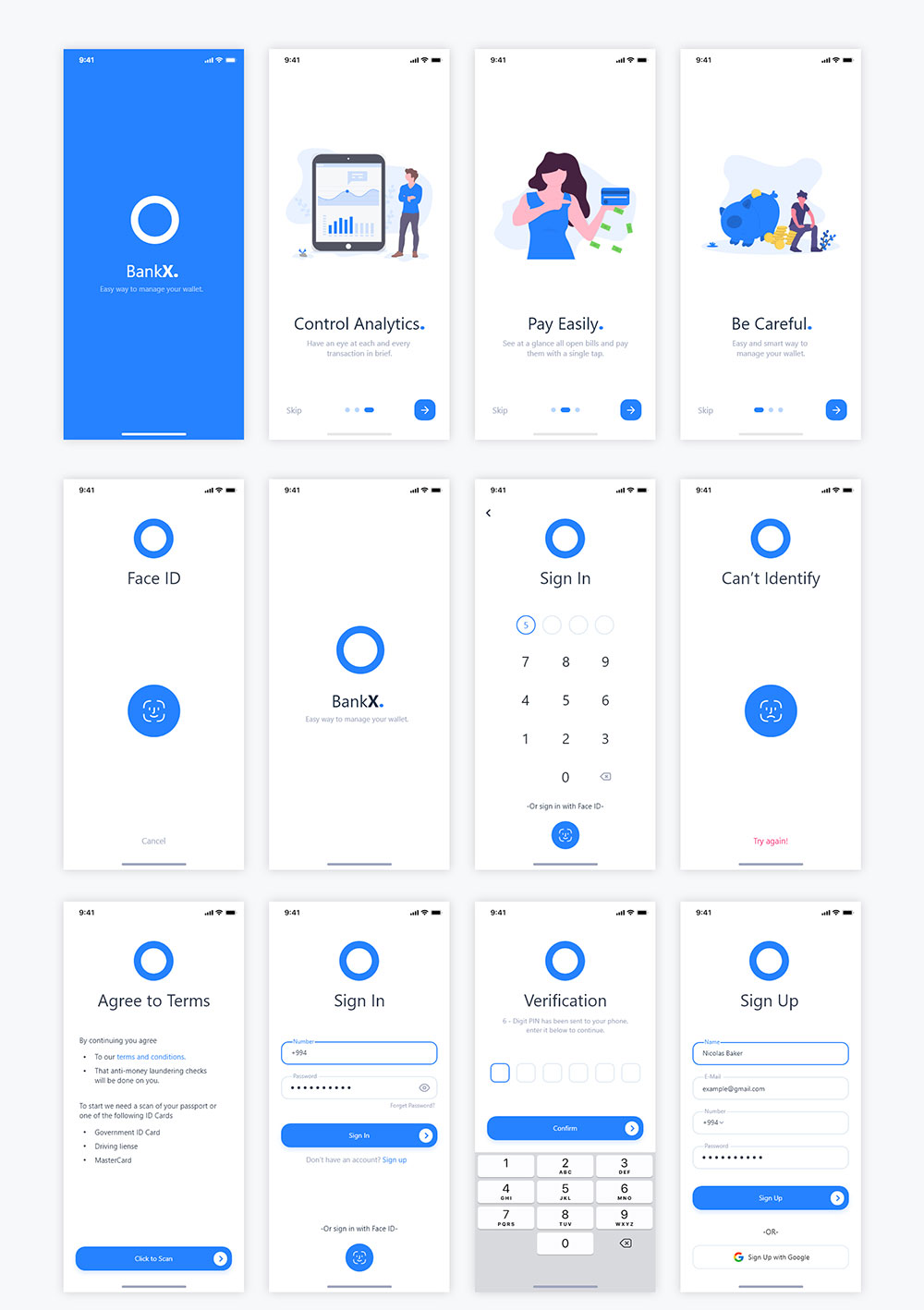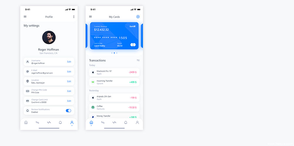 2个色彩主题 成套金融app ui bankX .xd素材下载