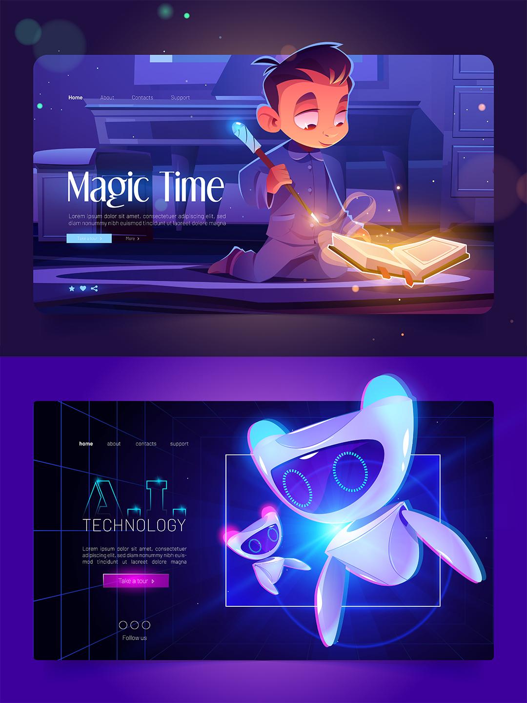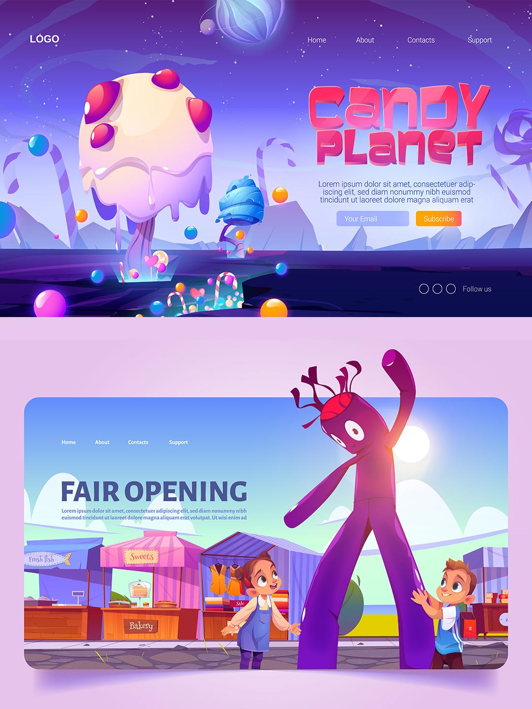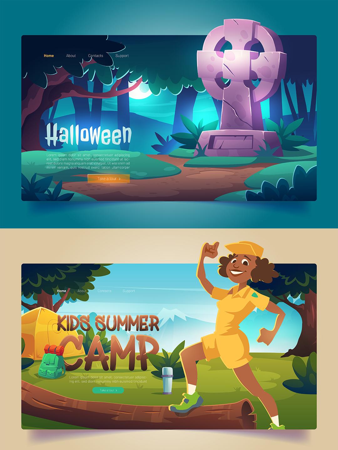 高级网页banner | 游戏UI设计 | 插画风AI源文件