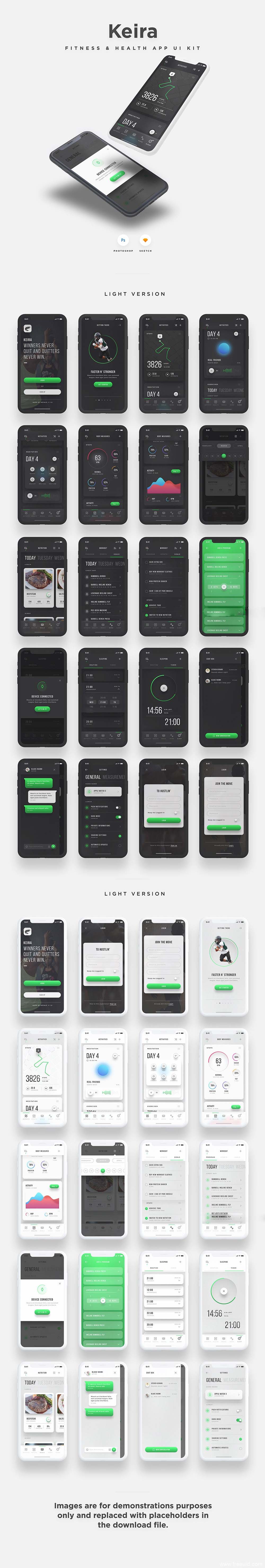 款运动健身类app UI KIT源文件下载,包含超过20个页面,黑白两种风格,ps、sketch、xd三种格式源文件