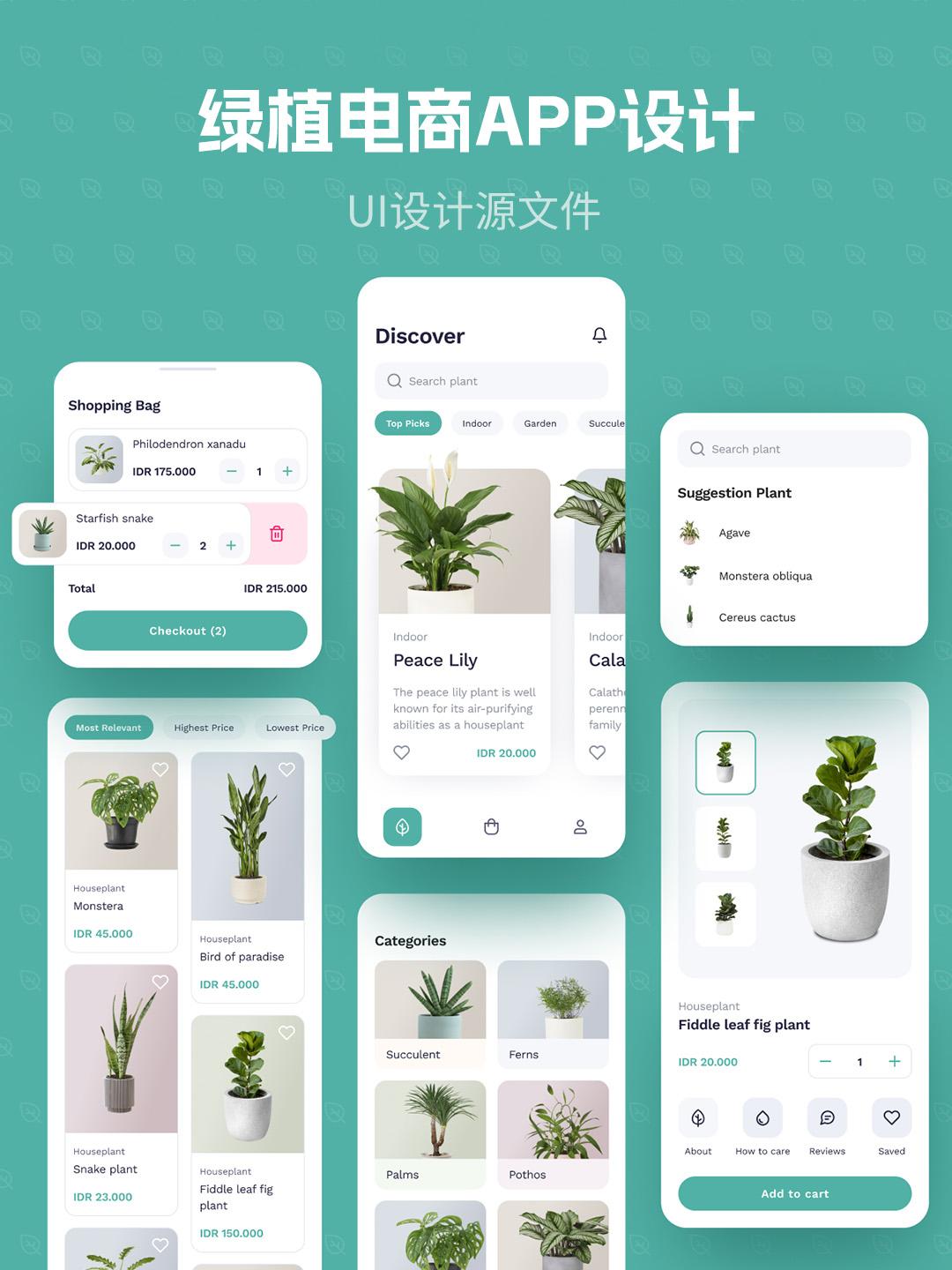 清新绿植电商UI界面设计 | APP设计Figma源文件