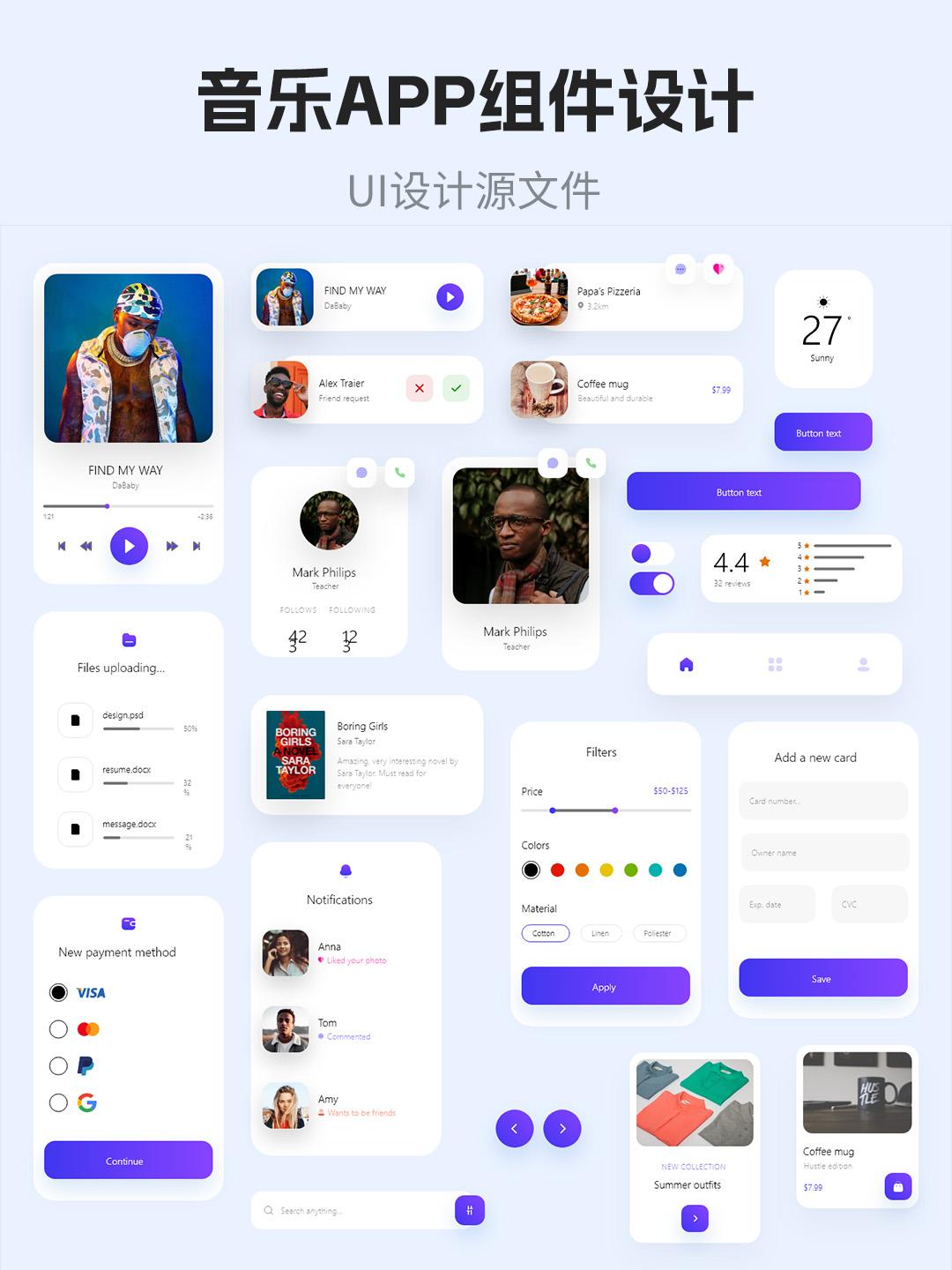 音乐APP设计组件源文件 | UI设计组件Figma、xd、sketch格式