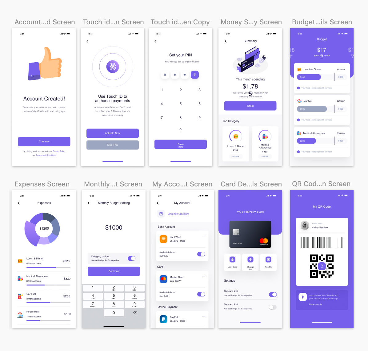 银行和金融应用程序的UI工具包sketch,xd,figma源文件