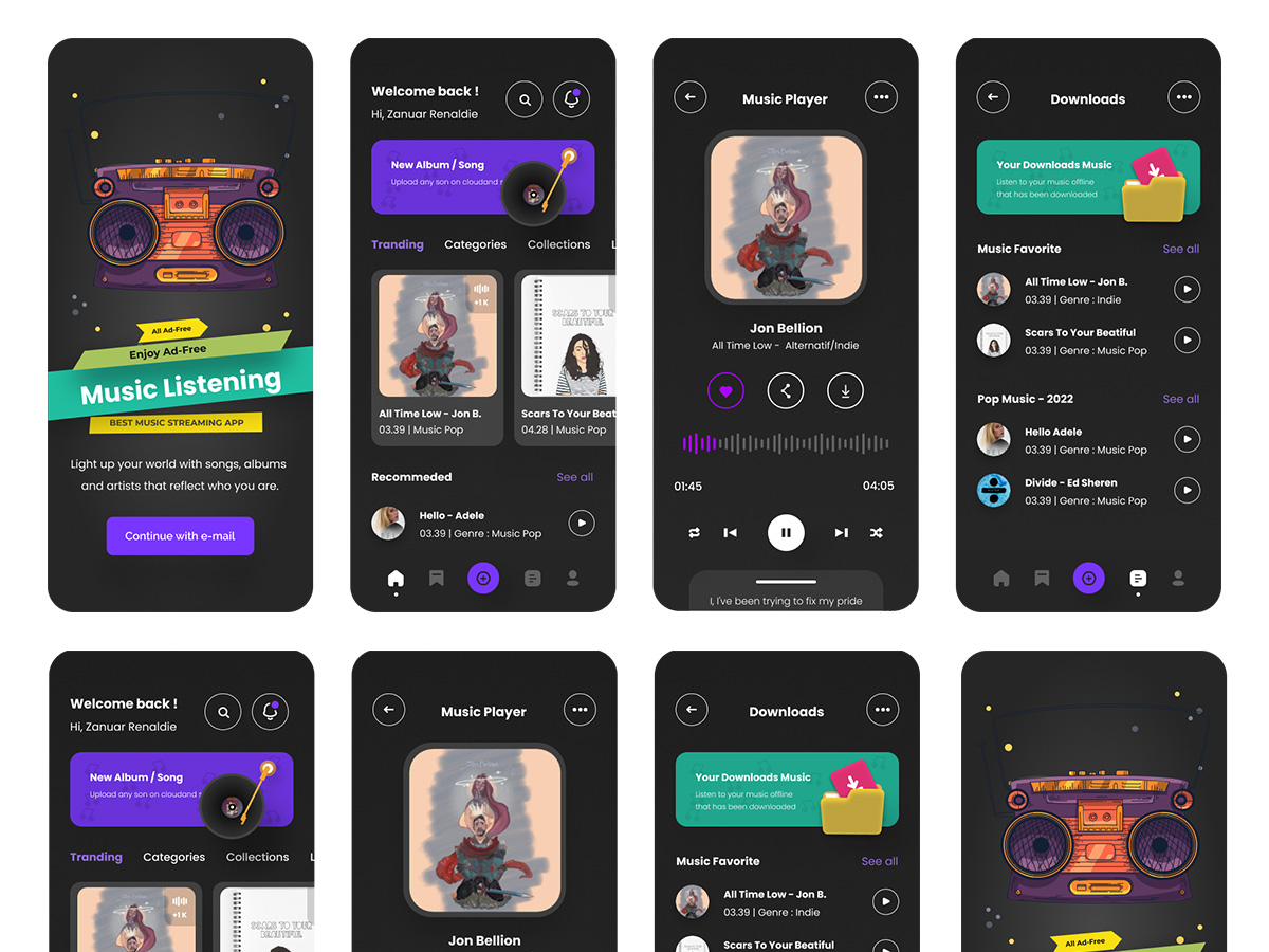 4页暗黑音乐APP界面设计XD、Figma设计源文件