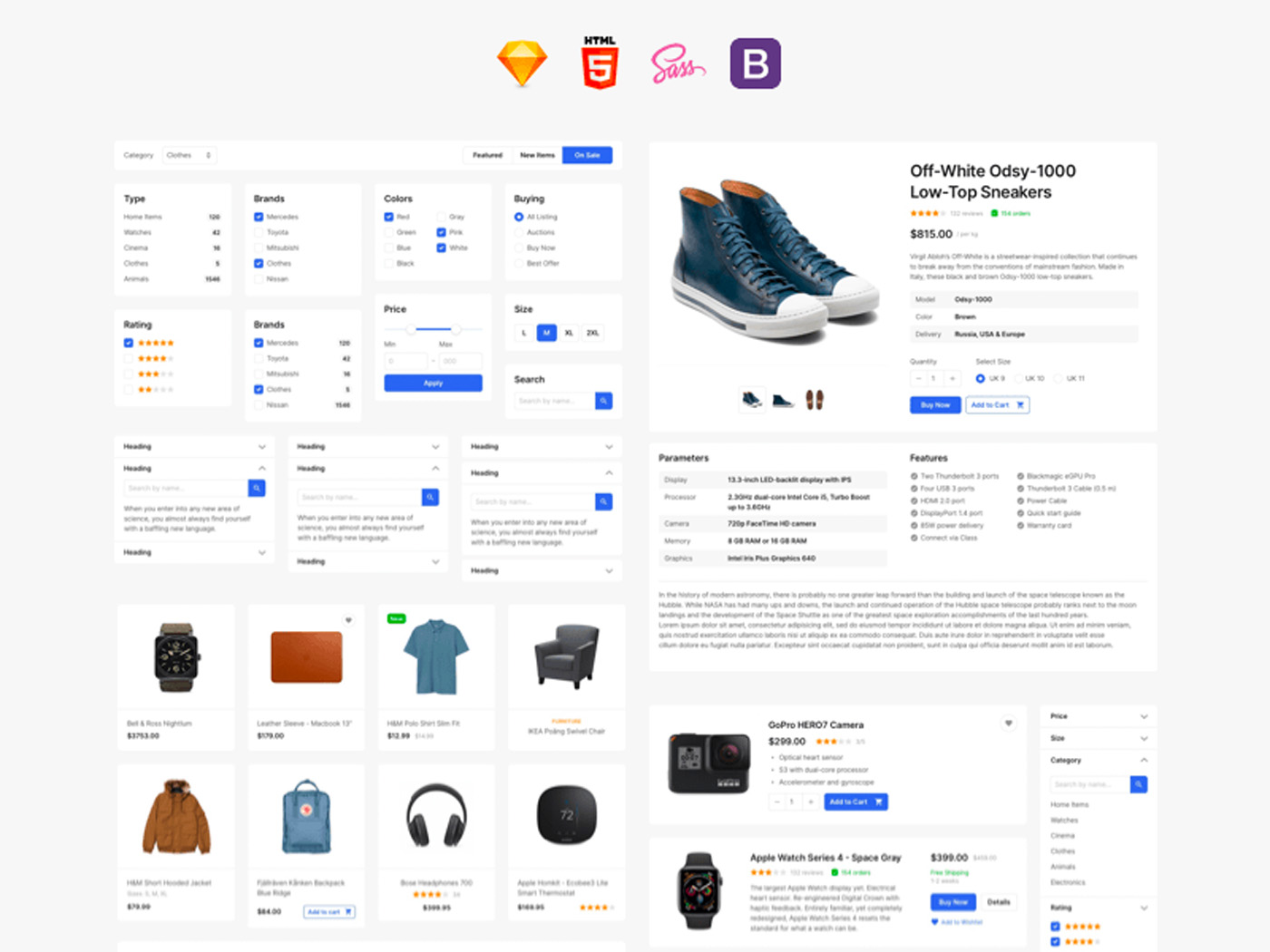 电商app系统和UI工具包,包括超过50个创意设计组件sketch源文件