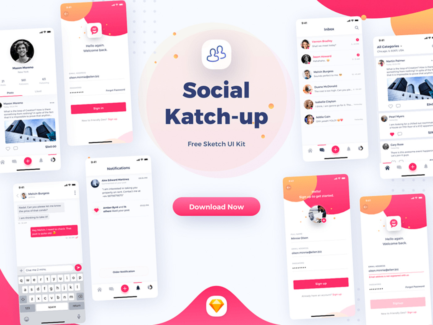 为你的下一个社交app概念提供简单多彩的入门sketch UI套件。