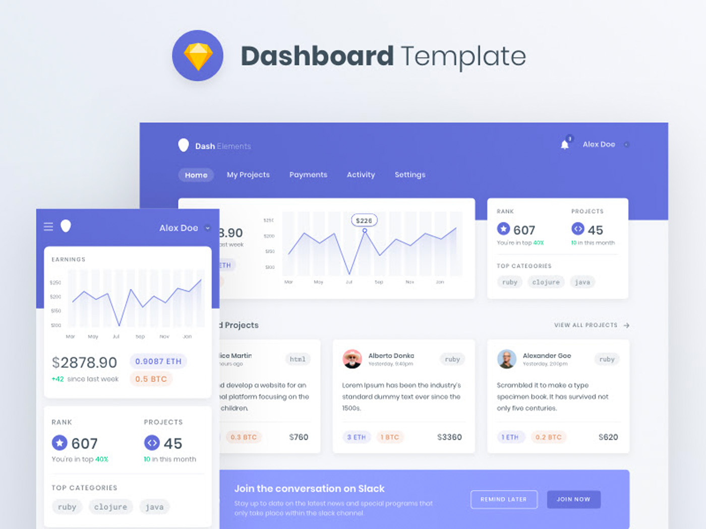 一个干净的仪表盘UI,有6个不同的卡片部分sketch源文件