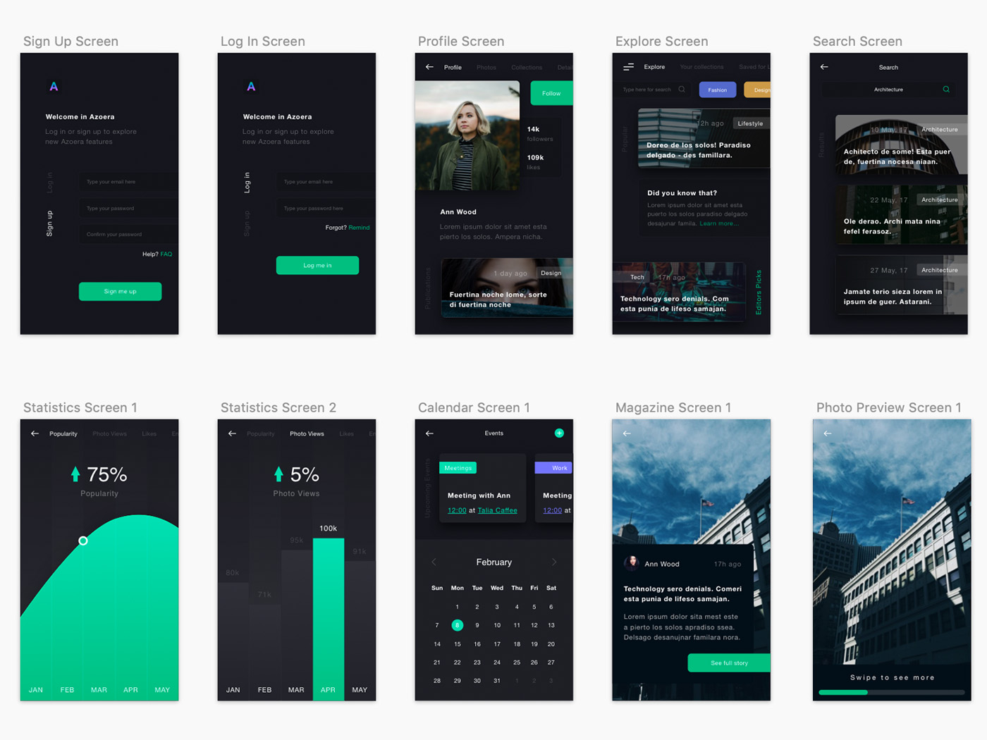 Azoera -深色UI移动应用Sketch资源