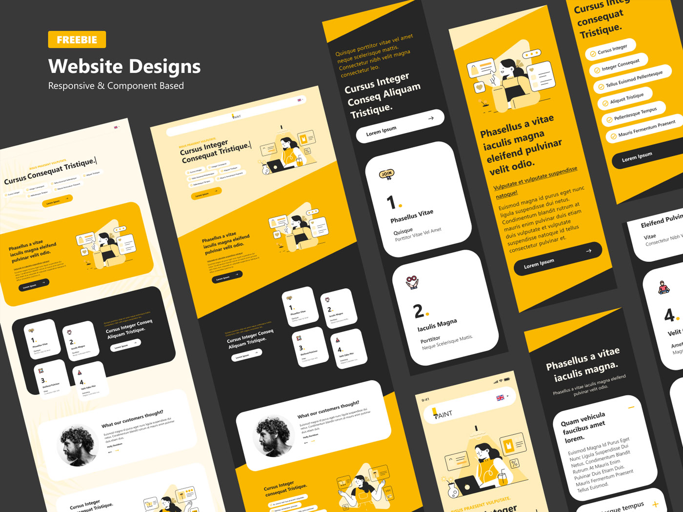 经典黄黑配色插画风,响应式网站设计figma源文件