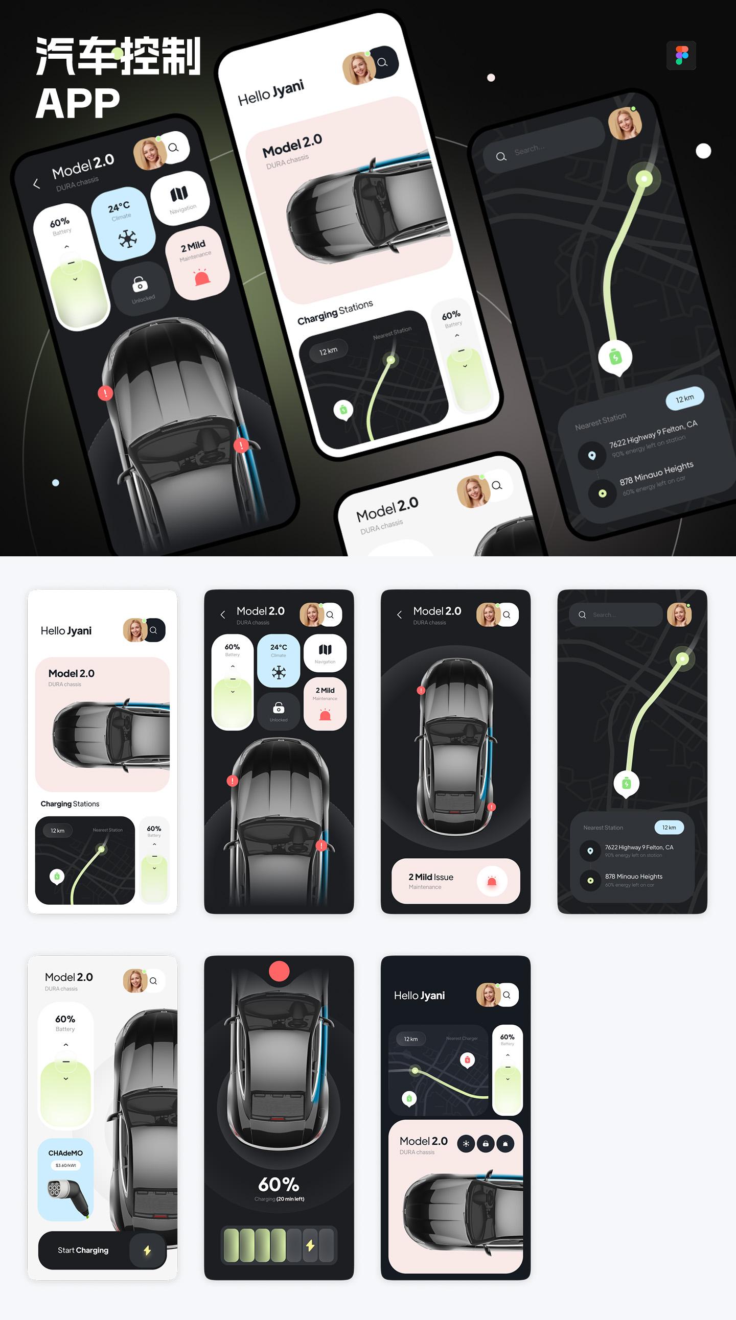 特斯拉车载中控,智能汽车,车机系统UI界面figma源文件