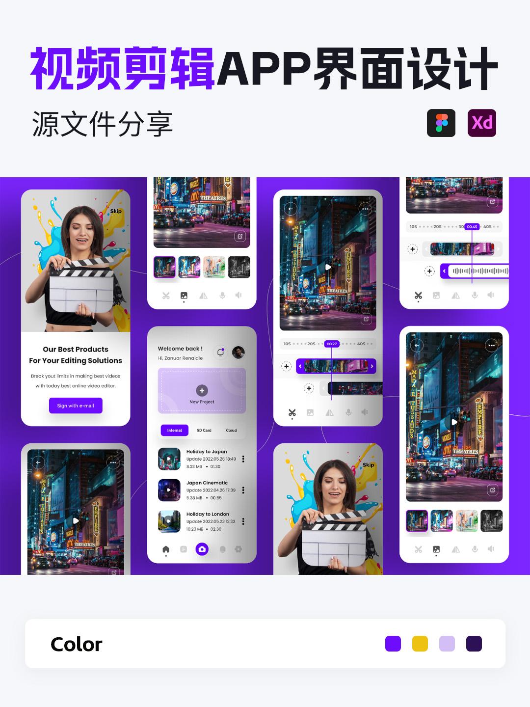 视频剪辑APP界面设计Figma、XD源文件