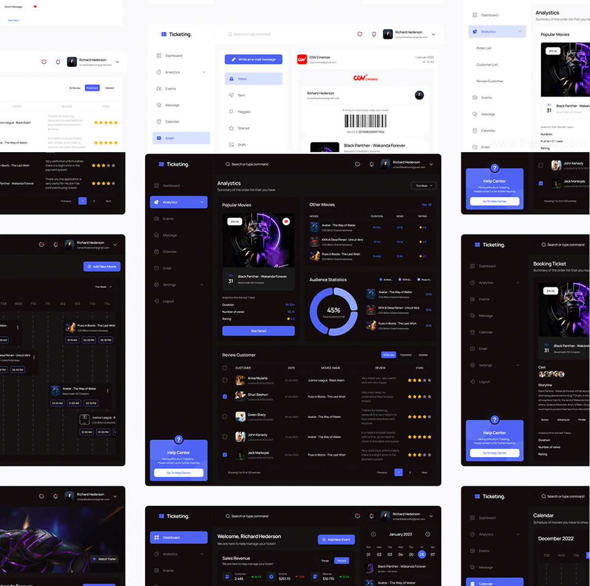 60屏票务预订仪表盘UI套件,高效管理工具figma源文件