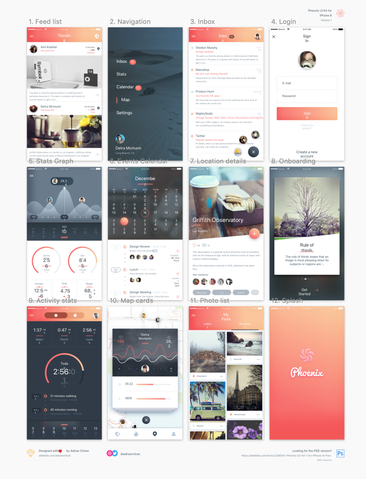 iOS UI工具包包含12个设计精美的sketch屏幕。