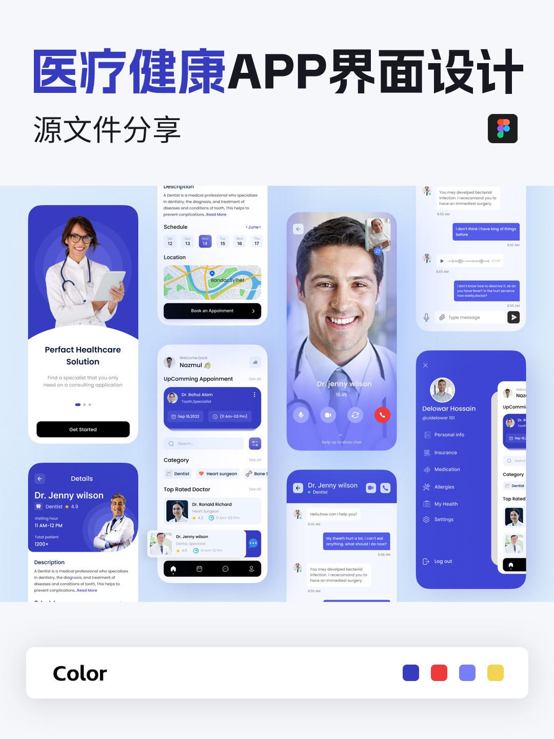 10页医疗健康APP/小程序设计|UI设计Figma源文件