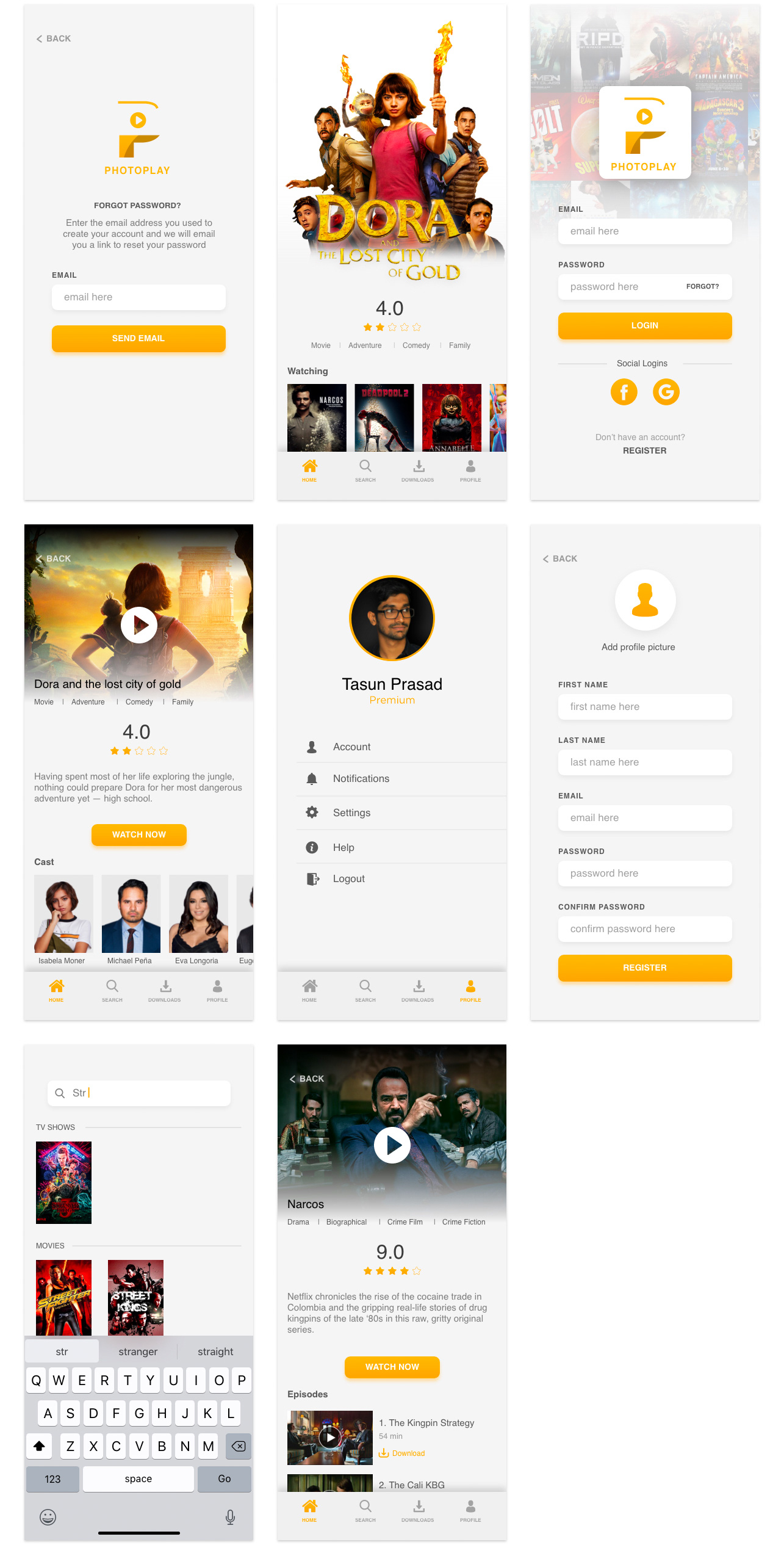 20屏电影和电视节目流媒体移动 UI 工具包xd素材