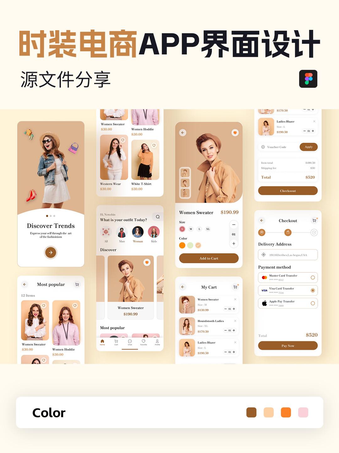 明暗各40页时尚马卡龙色移动+PC设计figma源文件