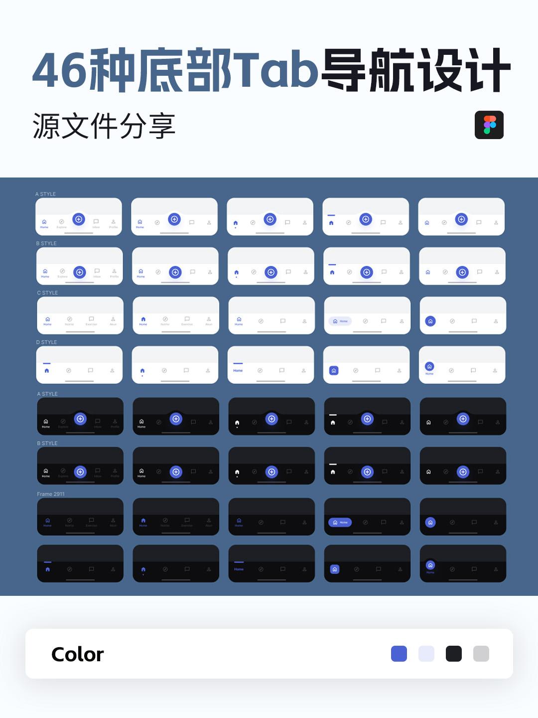 46种APP底部Tab导航栏设计Figma源文件素材