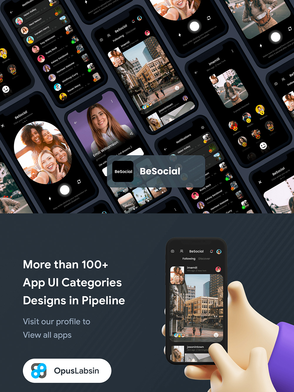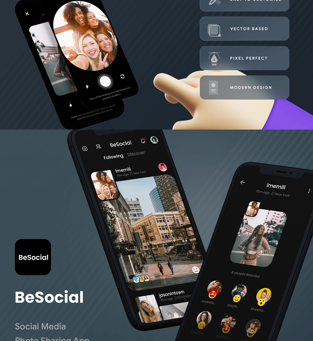 暗色风图片社交APP UI资源素材设计模板xd源文件