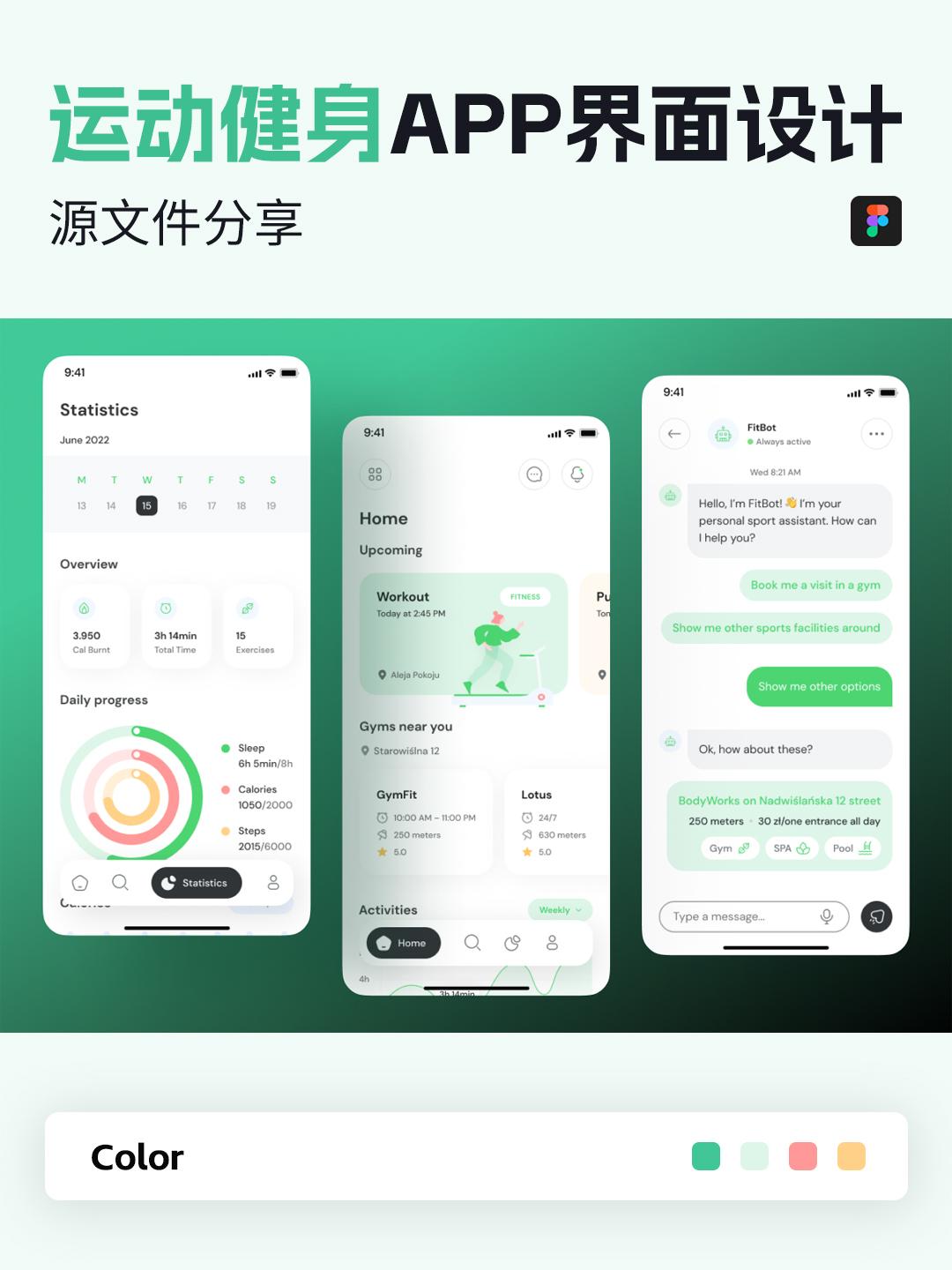 3页运动健身APP/小程序设计|UI设计Figma源文件