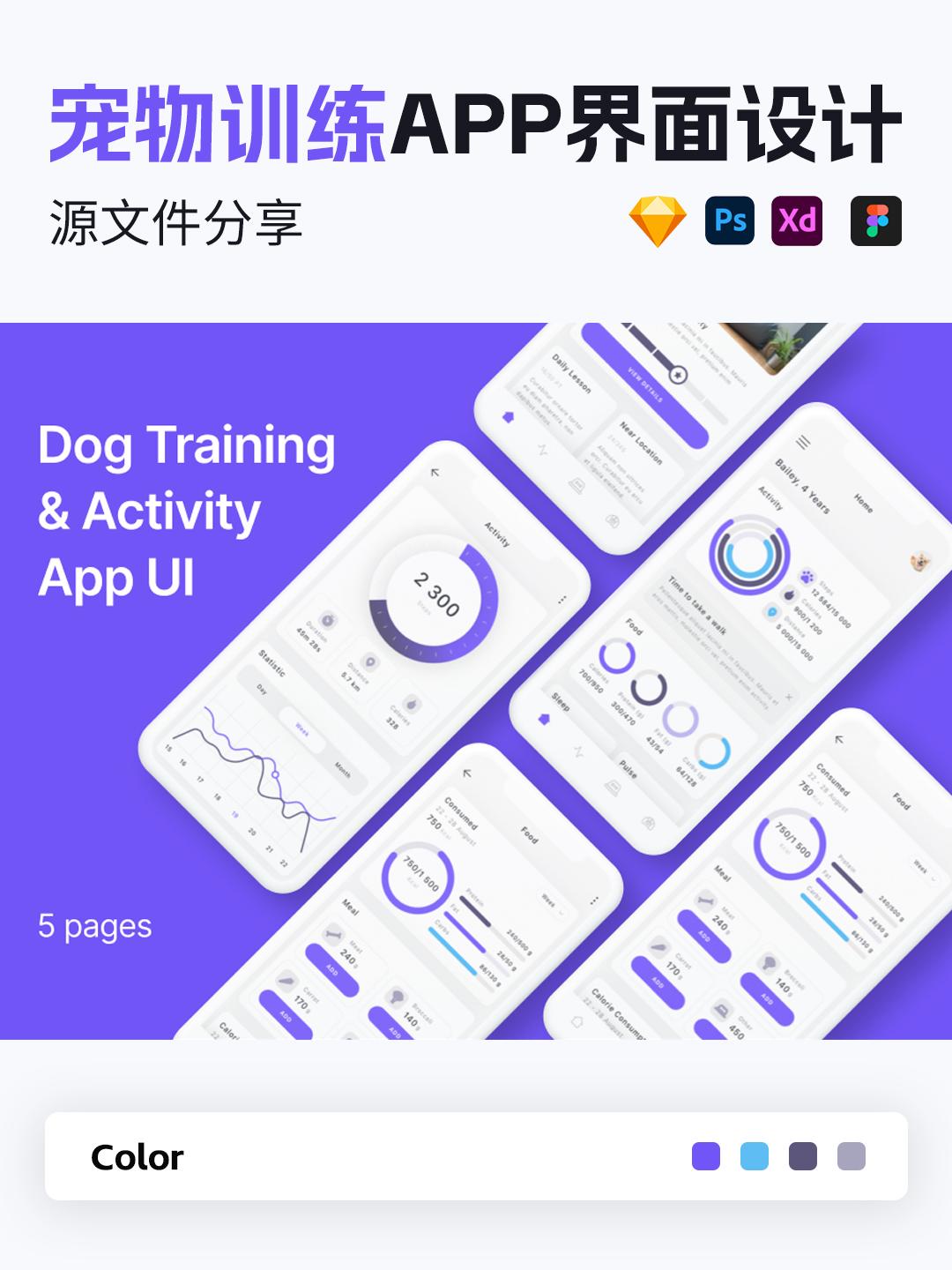 宠物训练APP原型设计Figma/Sketch/PSD/XD源文件「无参考图」