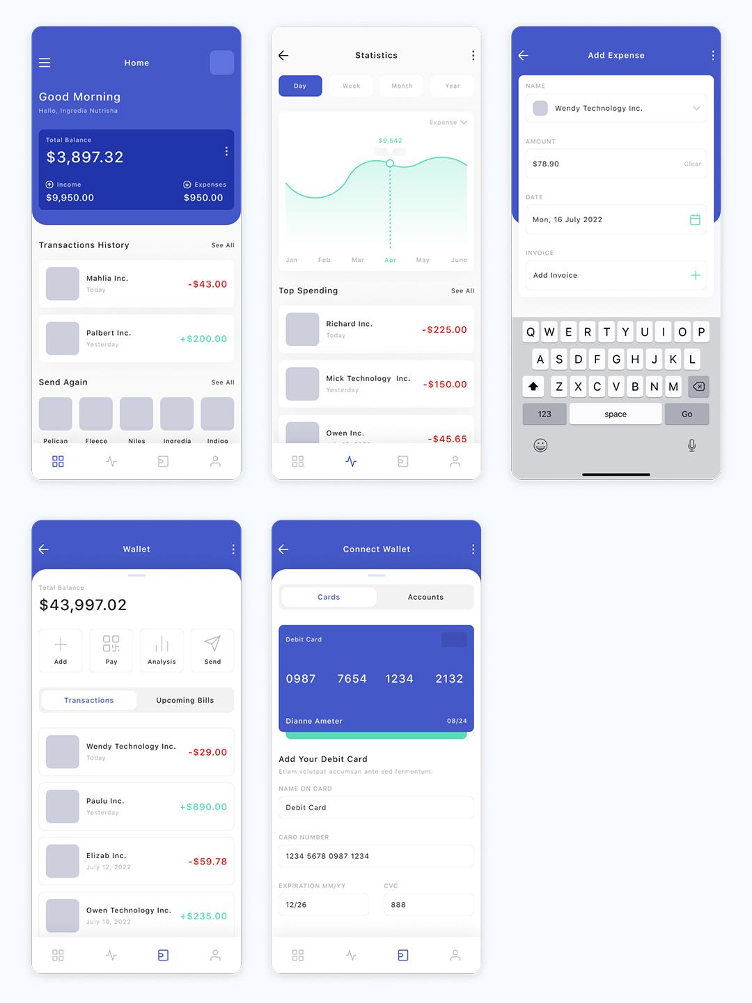 5页收支记账APP设计Figma/Sketch/PSD/XD源文件