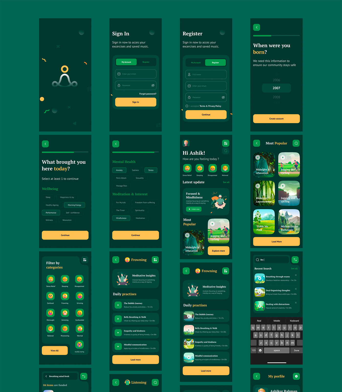 用于冥想的app移动应用程序 UI 套件figma源文件