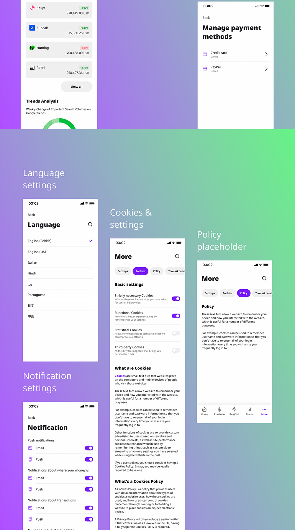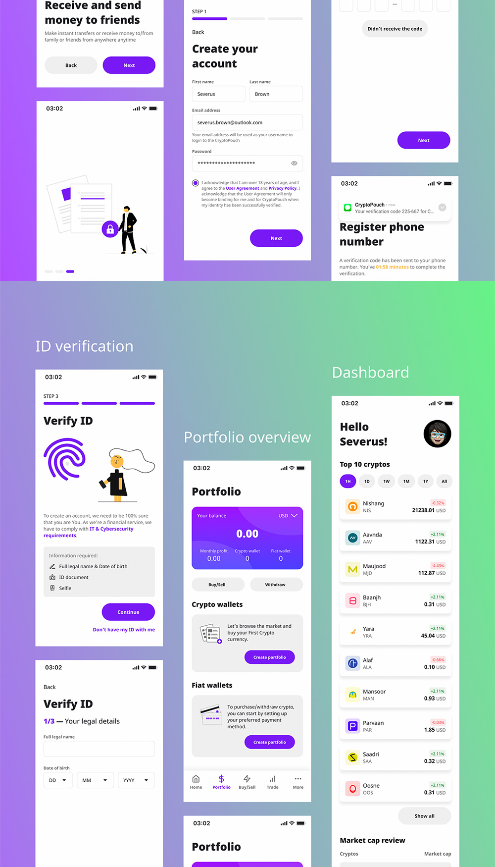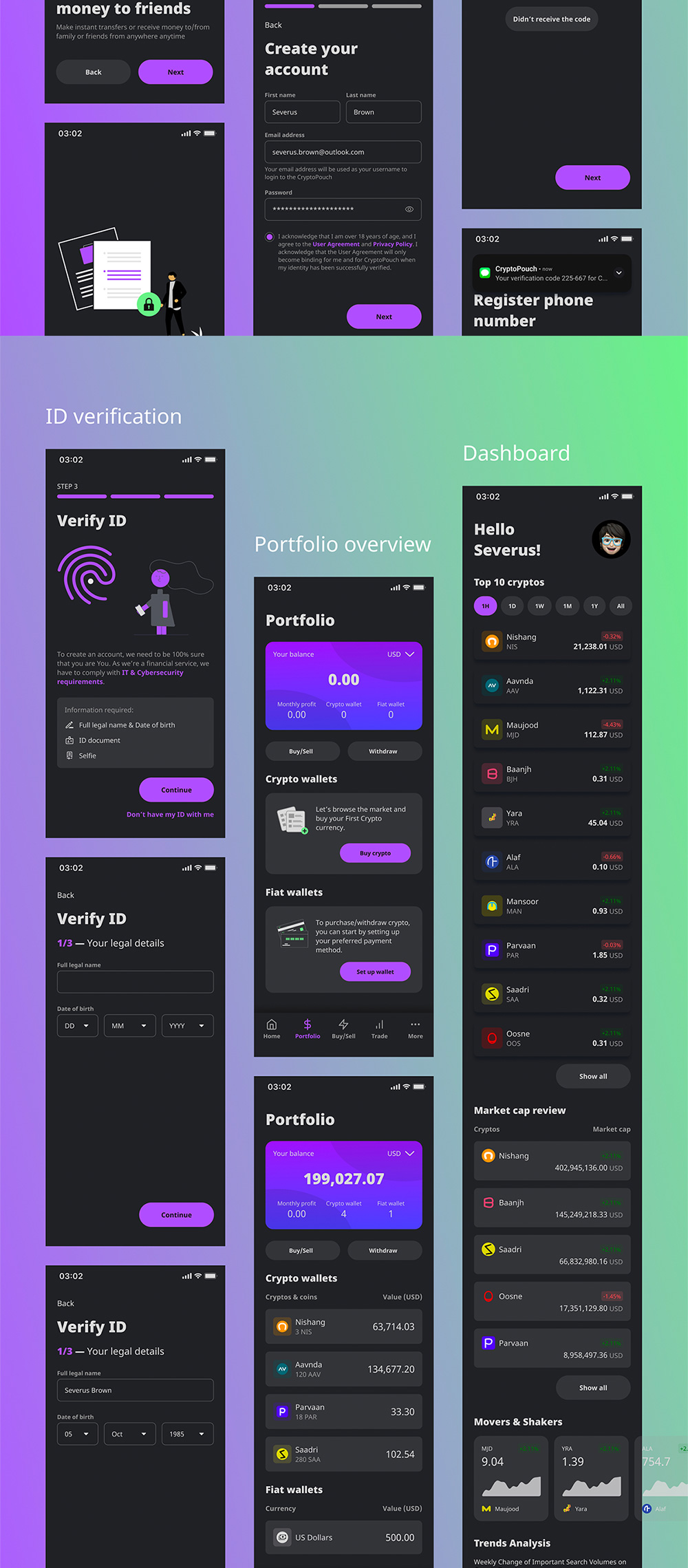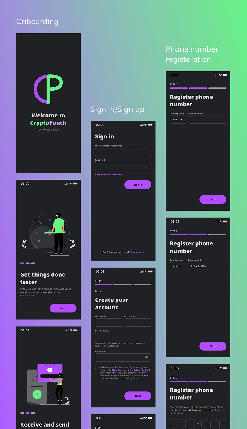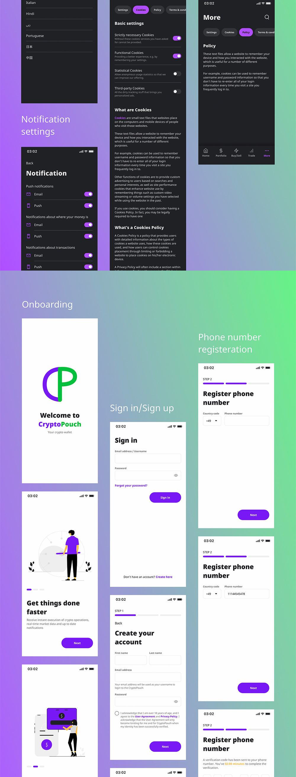 CryptoPouch Mobile UI Kit 提供涵盖广泛的加密和应用程序操作的解决方案,即