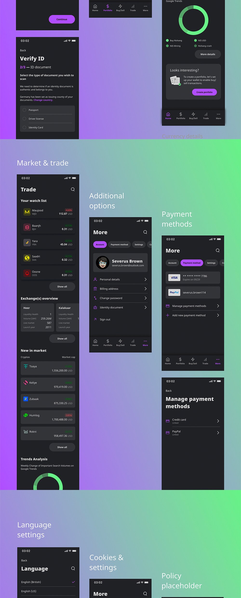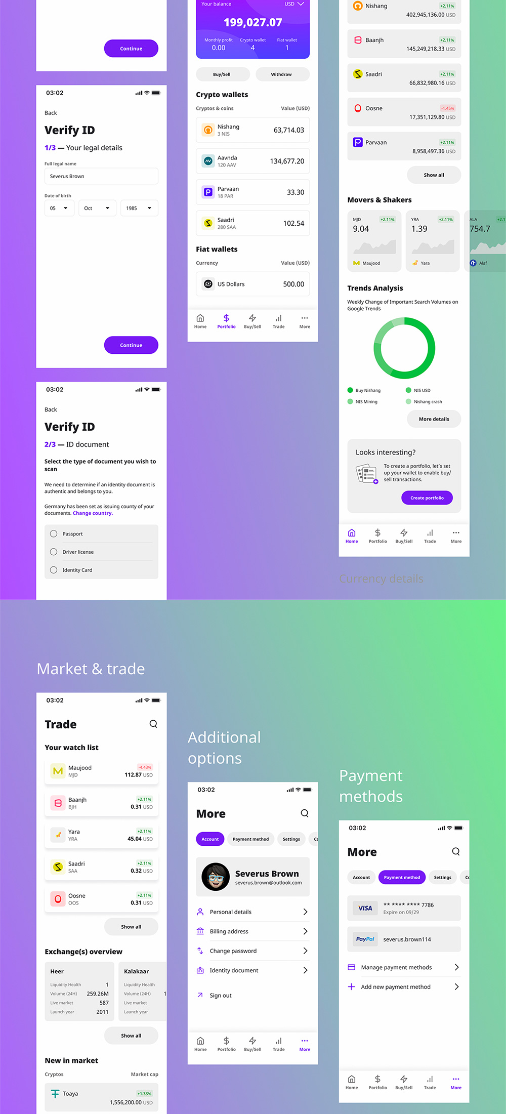 “CryptoPouch 移动应用程序用户界面工具包”——一个移动应用程序用户界面工具包,可帮助支持您的加密钱包应用程序开发过程。它适用于加密货币交易所、加密货币初创企业、加密货币投资者、剥头皮交易者、日内交易者、波段交易者、头寸交易者和相关业务。CryptoPouch 带有一个现代的用户界面,平衡了使用 Figma 工具打造的流畅的用户体验。该套件包含 100 多个用户体验友好的屏幕,整齐地分组并相应地组织起来,可以轻松更改所有设计。它将帮助您更快、更轻松地为加密操作设计清晰的界面。