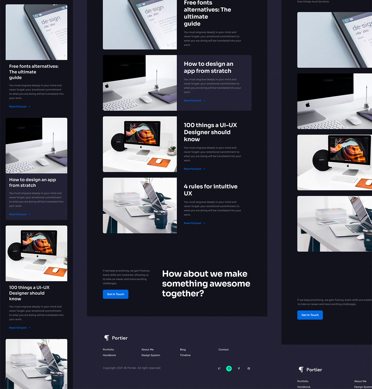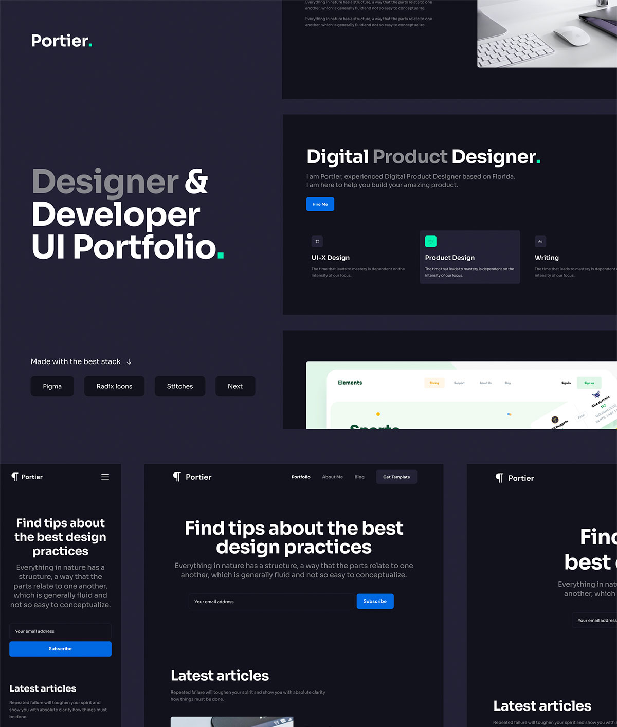 满足Portier,惊人的和干净的设计和代码完全响应模板的UI-UX设计师和开发人员。 它包含5个页面,其中包括主页,投资组合,关于我,博客和博客部分使用Markdown。 如果你是一个开发人员或设计师,希望有一个在线的存在,这是一个伟大的模板为你。如今,拥有一个作品集是必不可少的。 它是使用Figma设计的,它还包括使用Next JS的生产代码。