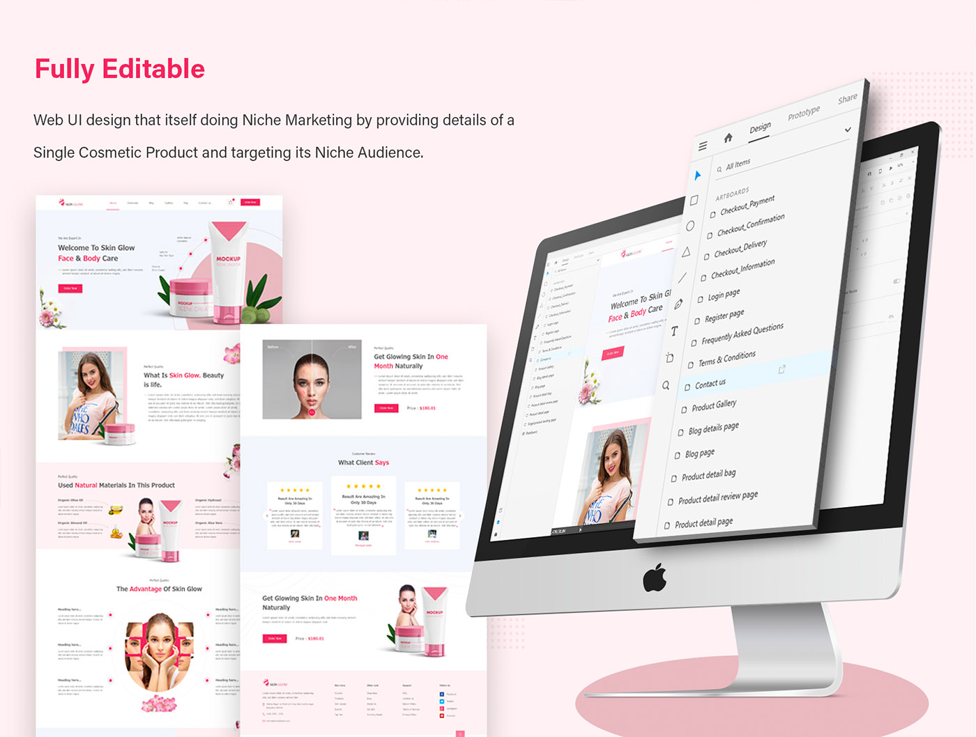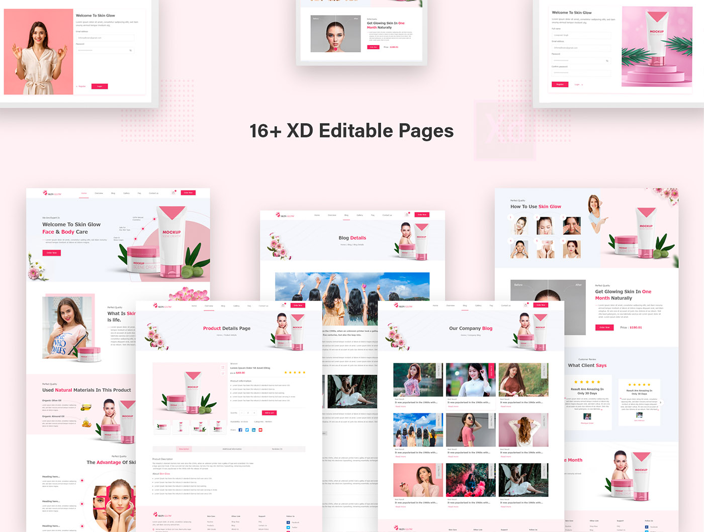 16页化妆品官网设计xd源文件,简洁现代的用户界面设计