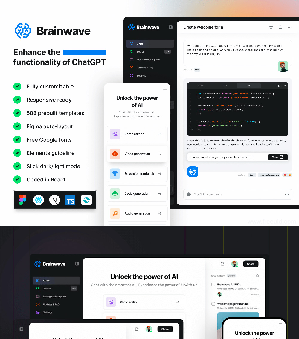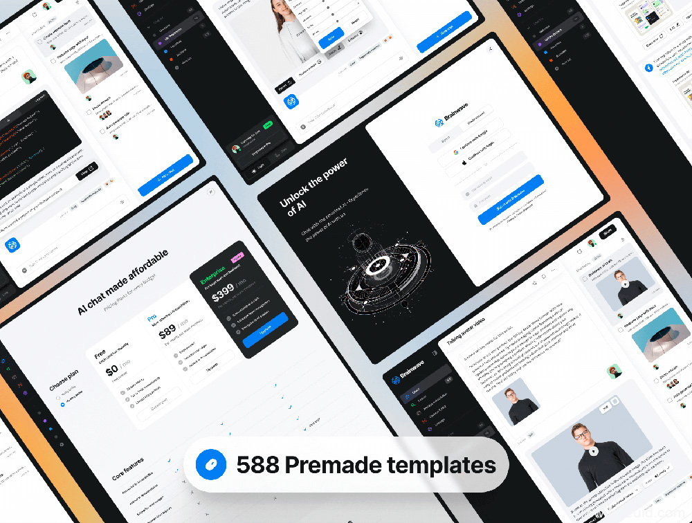 300页AI人工智能ChatGPT设计套件app+网页端figma源文件
