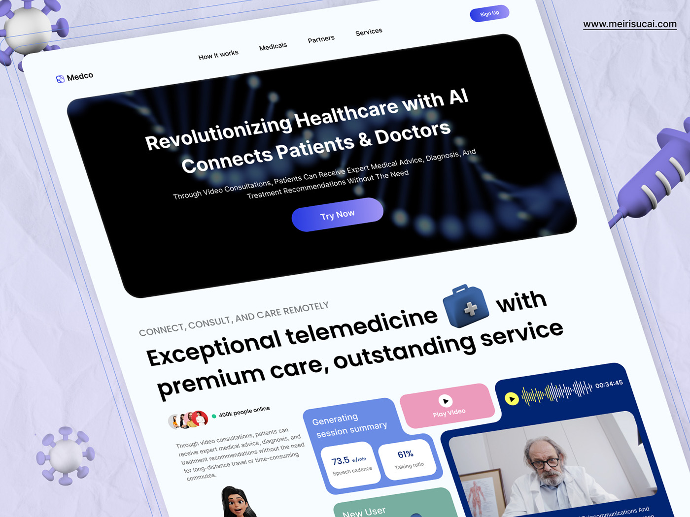Medco - AI医疗咨询网站免费素材sketch,xd,figma格式