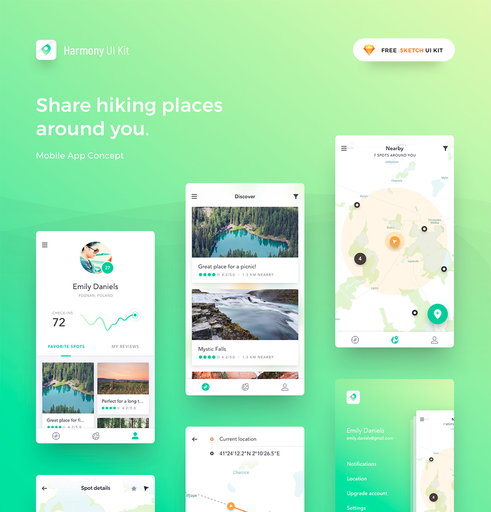 旅游探险,网红打卡分享位置坐标UI设计sketch素材