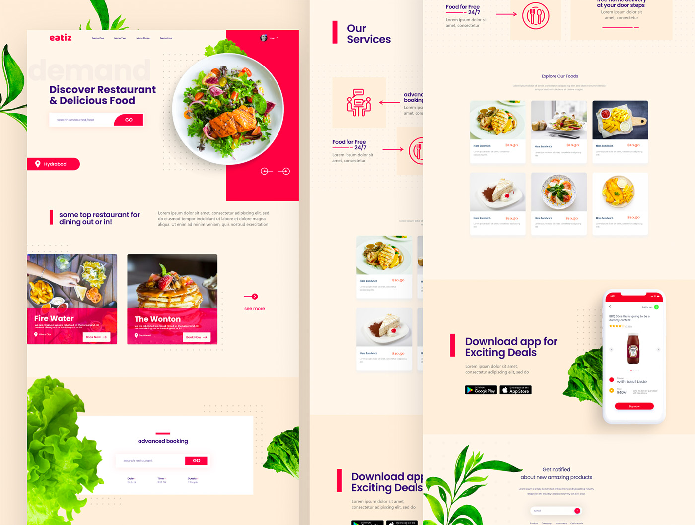 餐厅和食品预订,订餐网站 ui 套件设计XD源文件