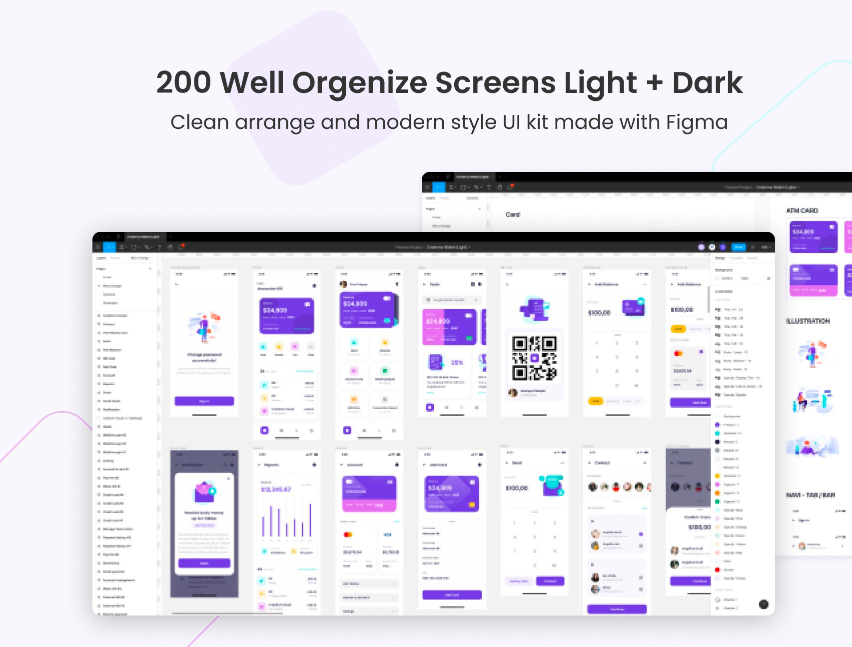 100页明暗双色金融钱包,金融支付app素材sketch,xd,figma格式