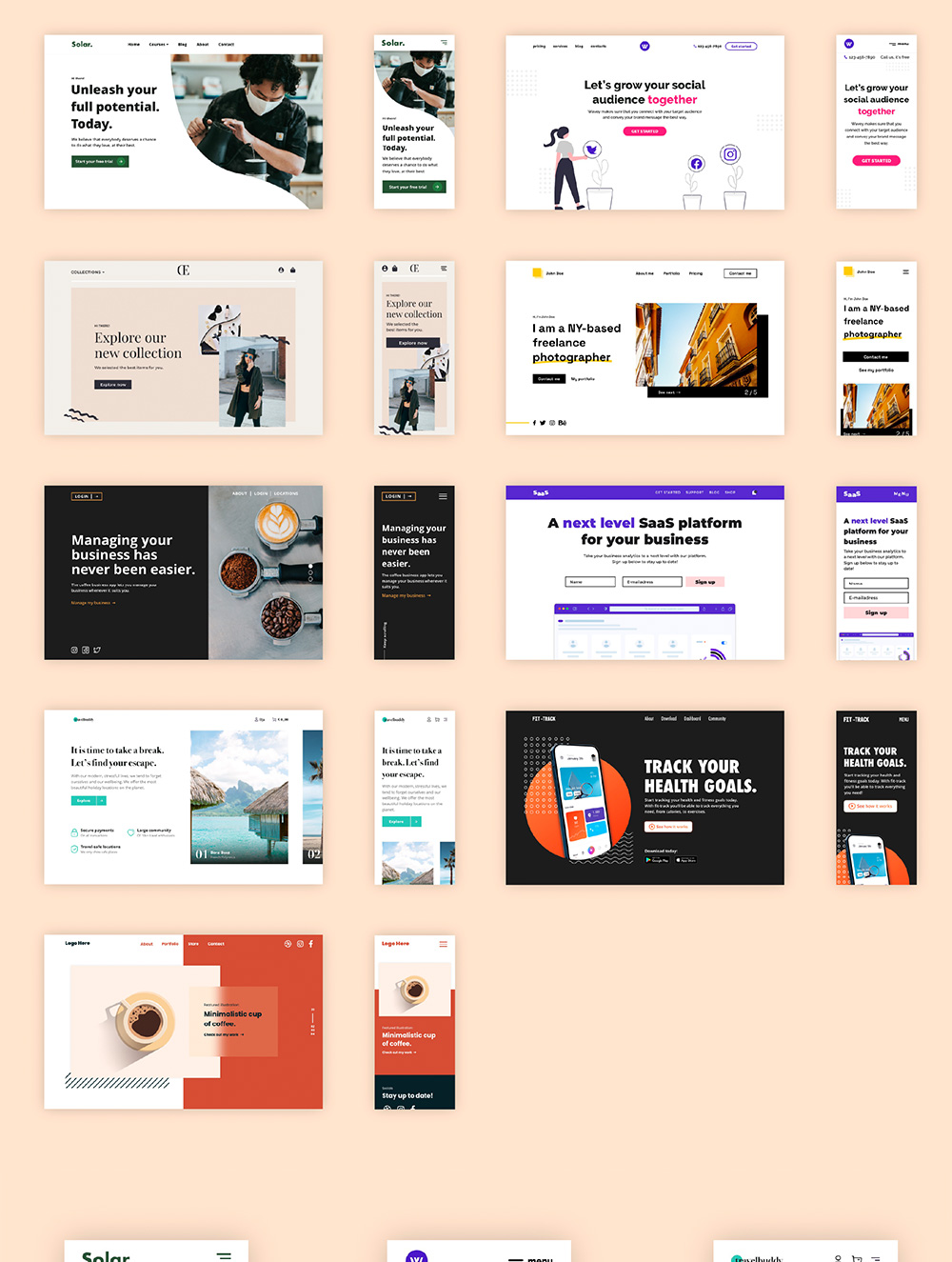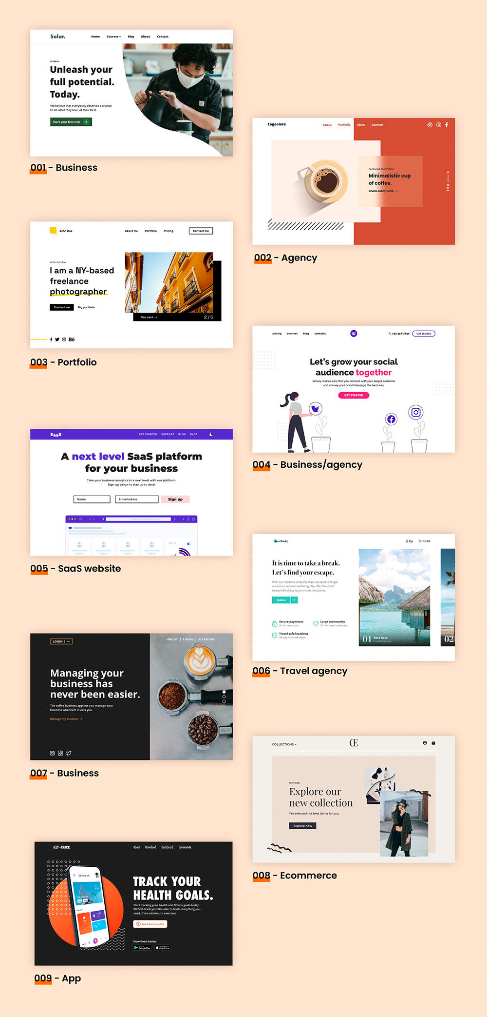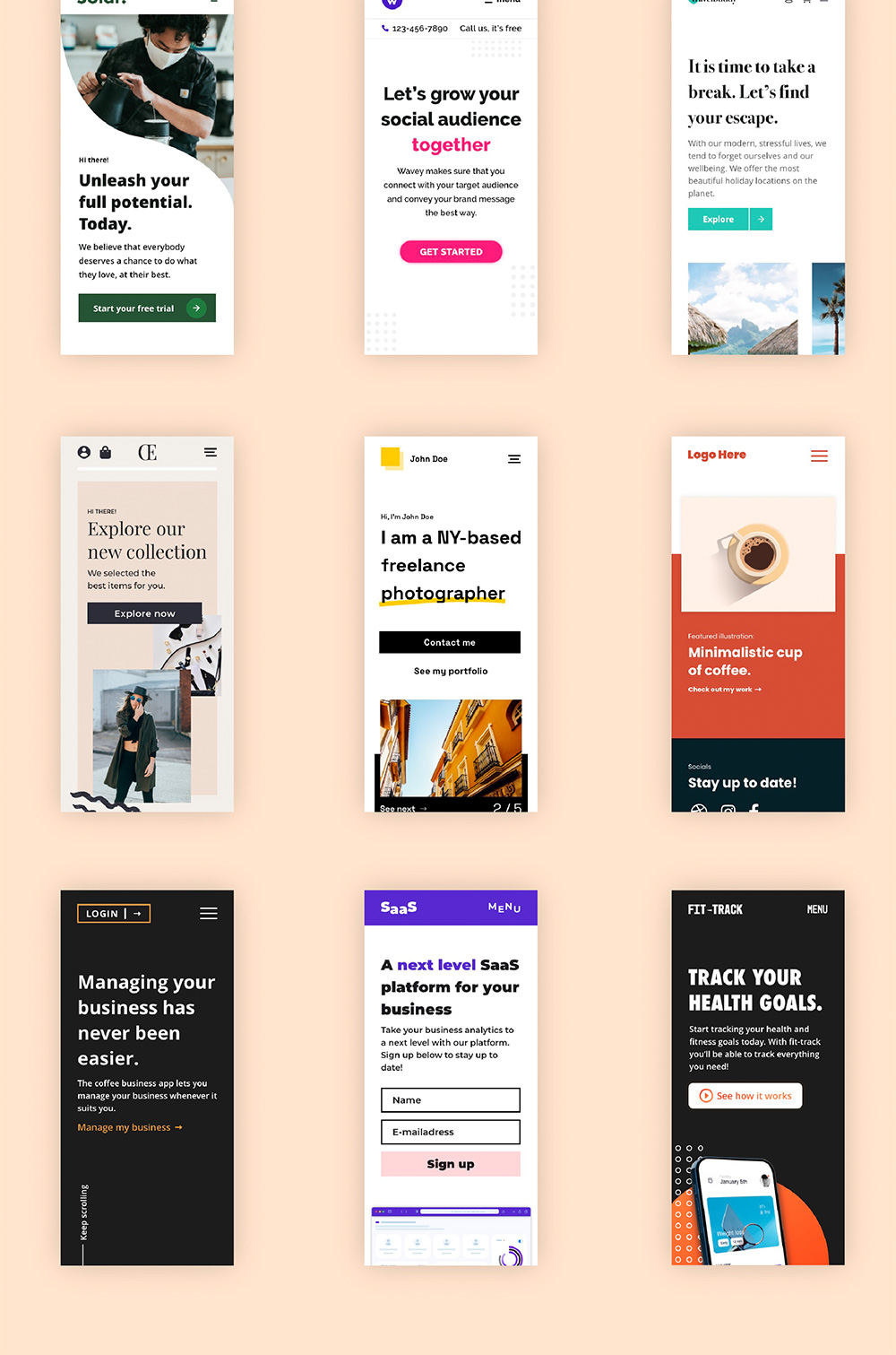 9款响应式网站首屏设计,应用于作品集,设计公司,saas产品等xd源文件