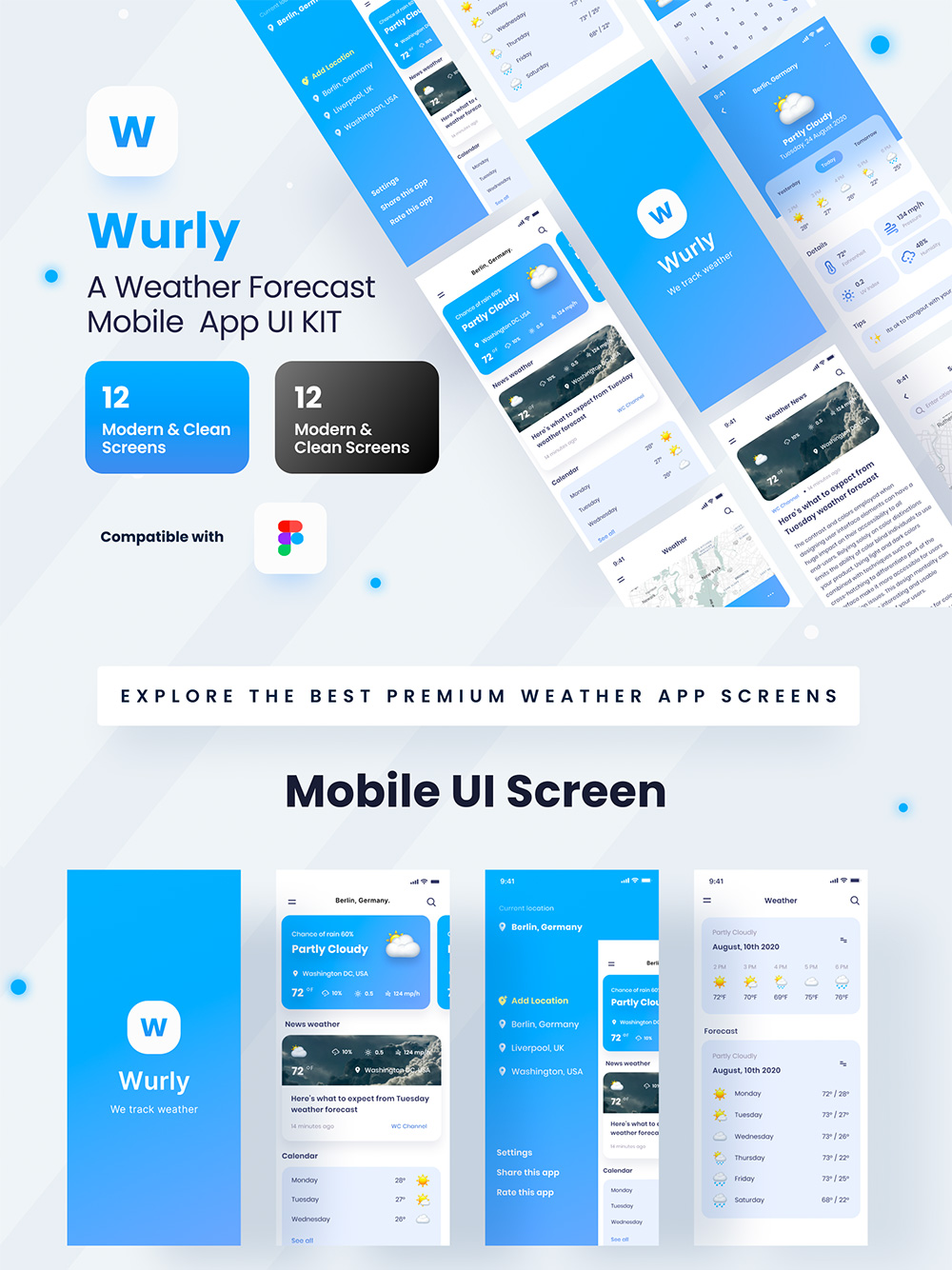 12页天气预报移动应用程序app UI 套件figma格式