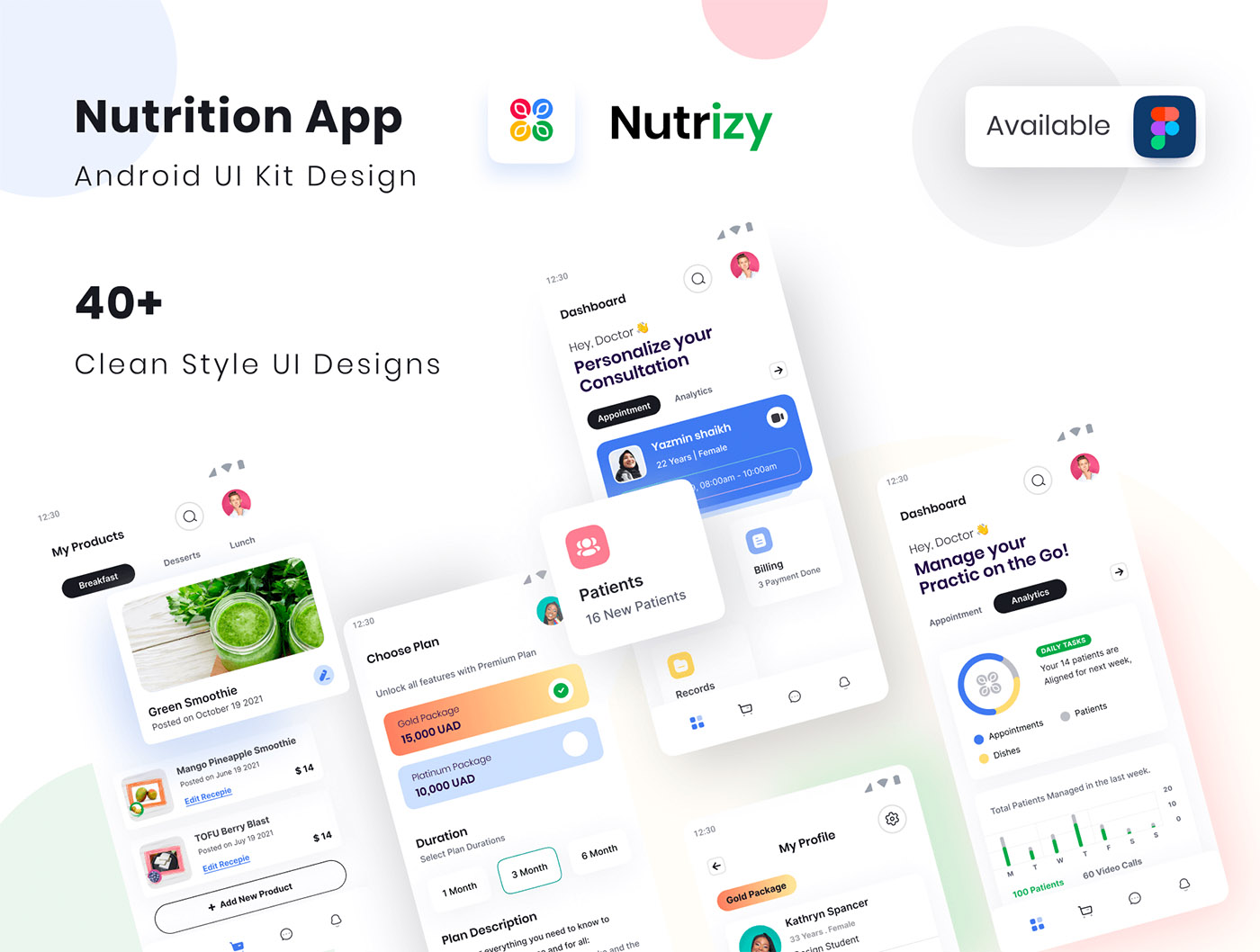 40页高级健康咨询app应用程序 UI 套件figma格式