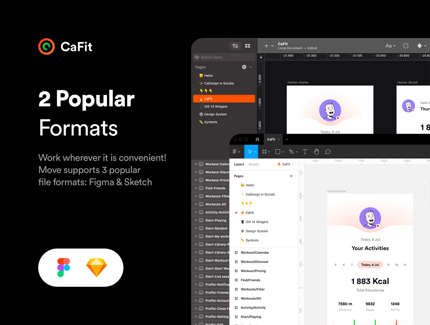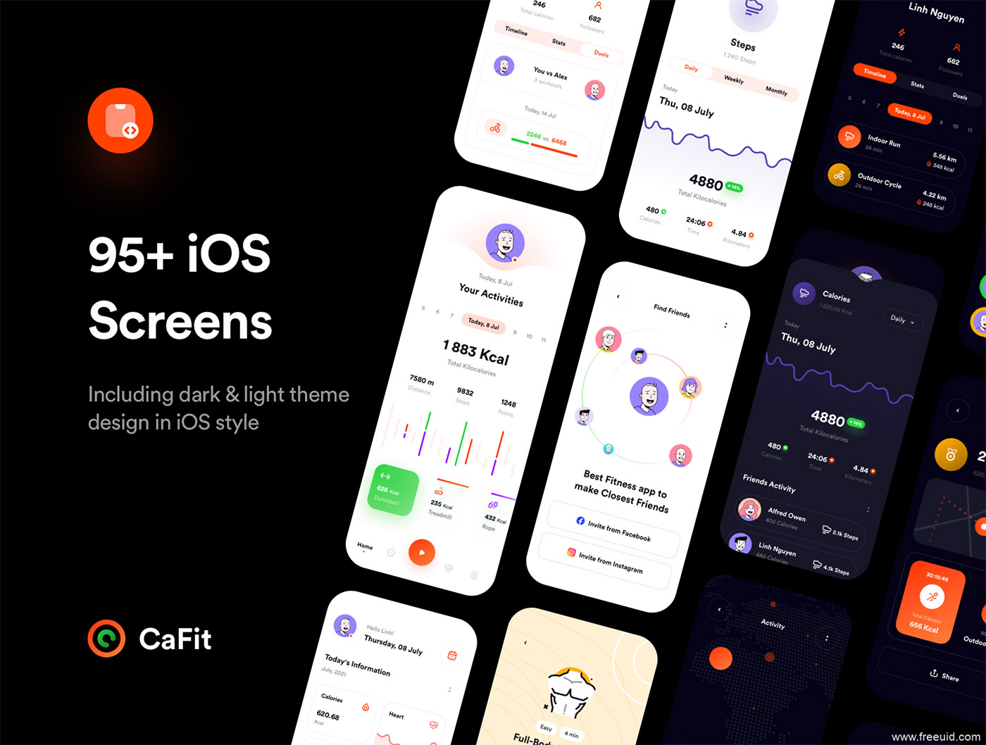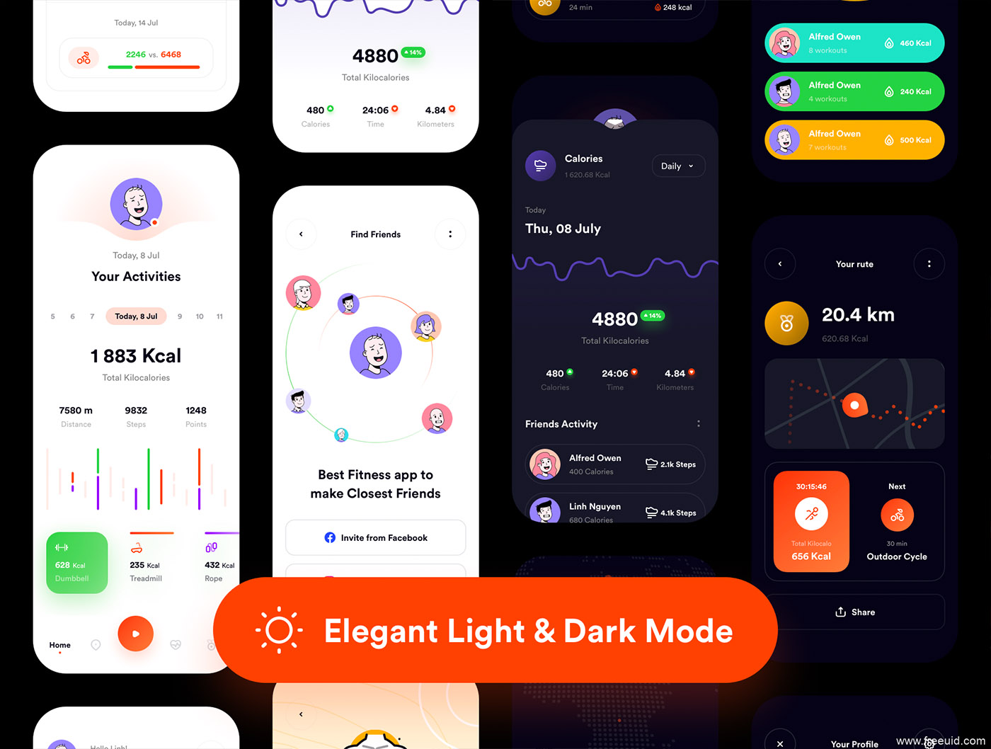 动感活力设计的运动锻炼app素材sketch,xd,figma源文件