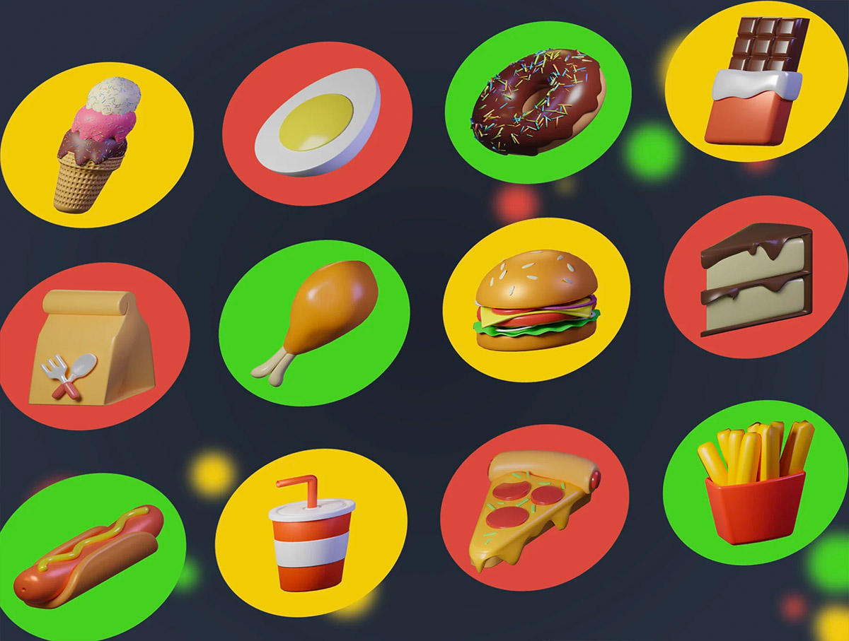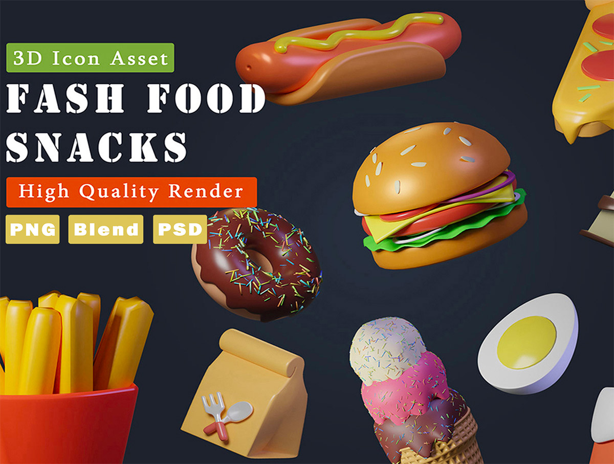 12个食品和零食 3D icon图标Blender,png格式