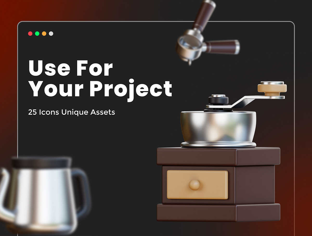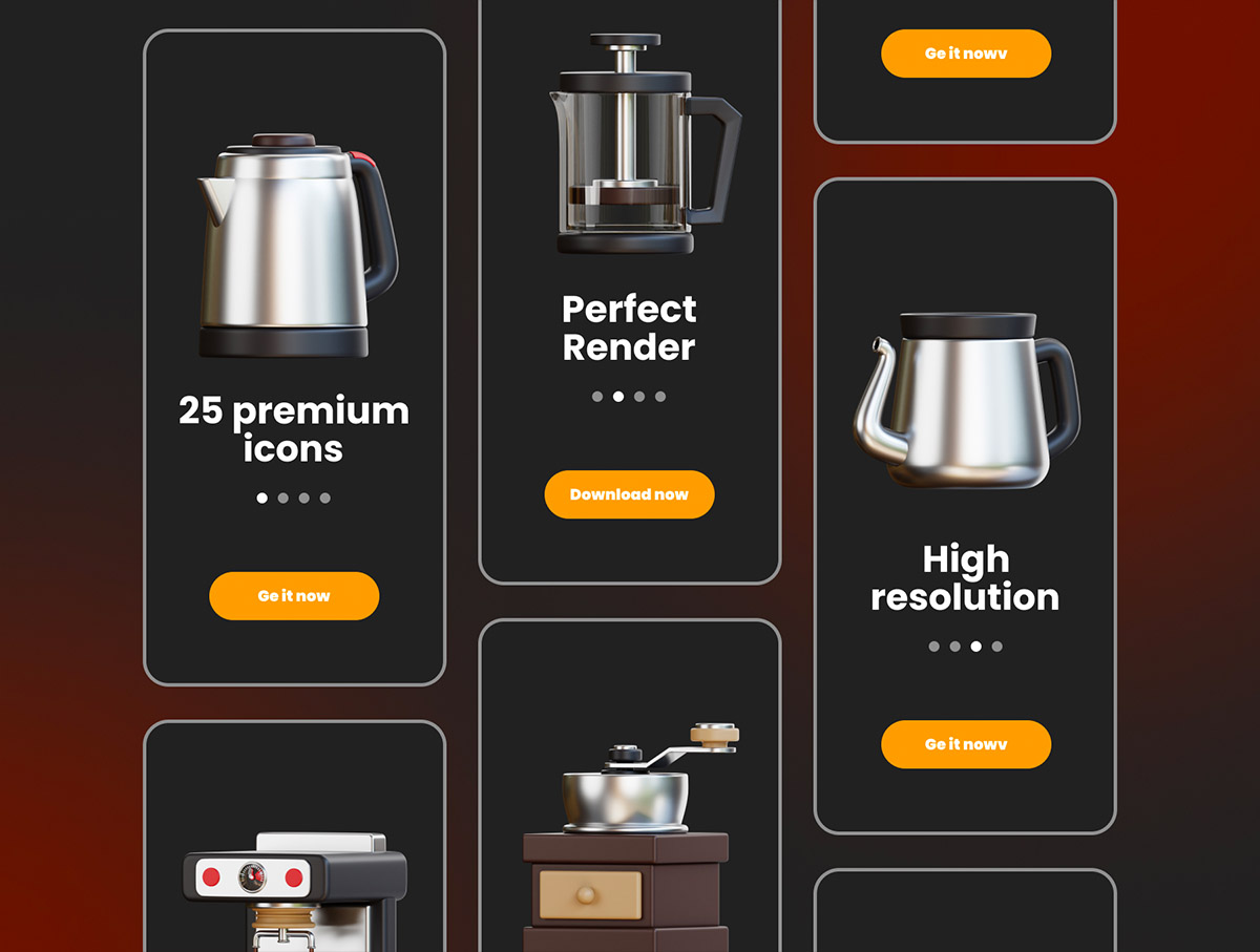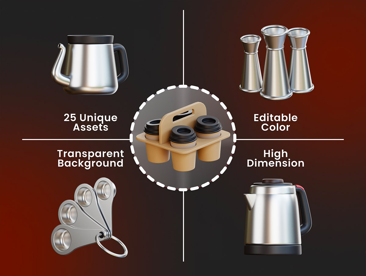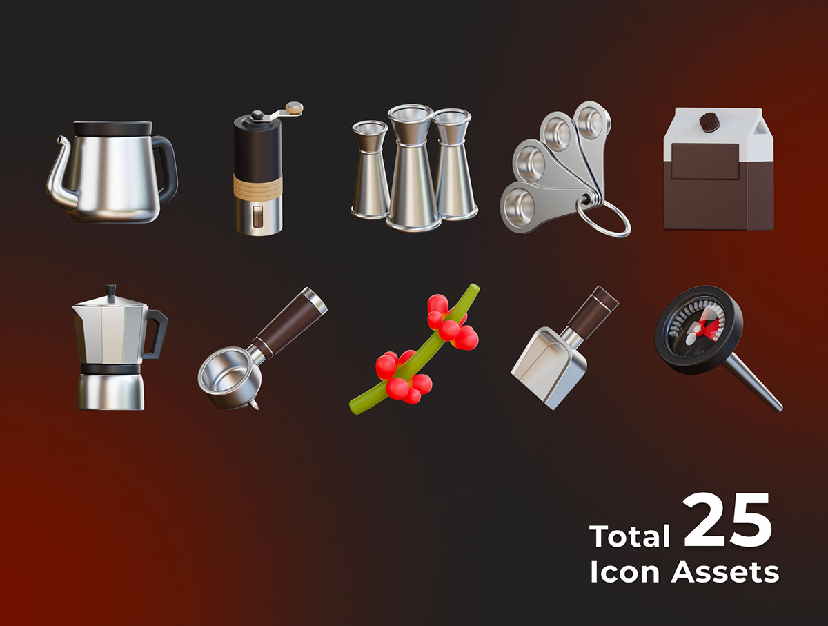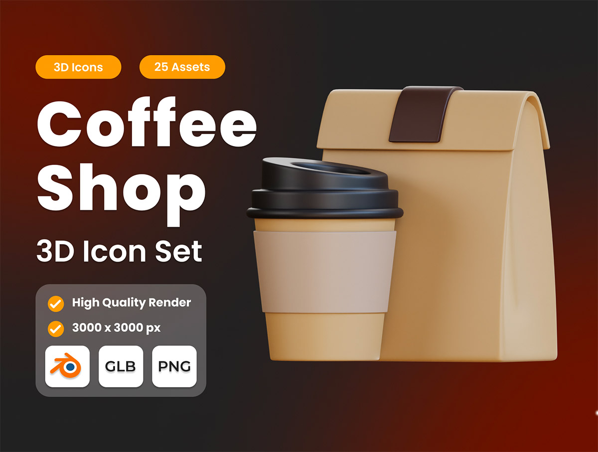 25个高级咖啡店3D插图包glb,png格式
