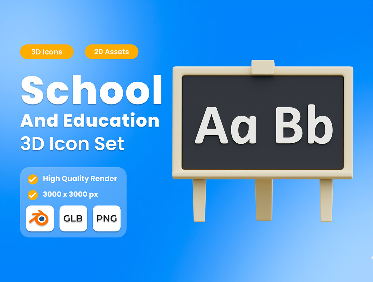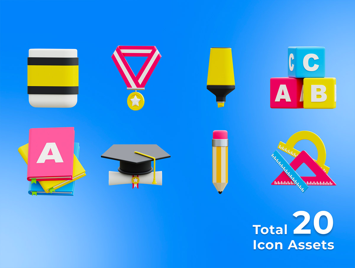 教育 3D 图标 用于您的 Web、应用程序、营销传播和PPT的 3D 教育图标