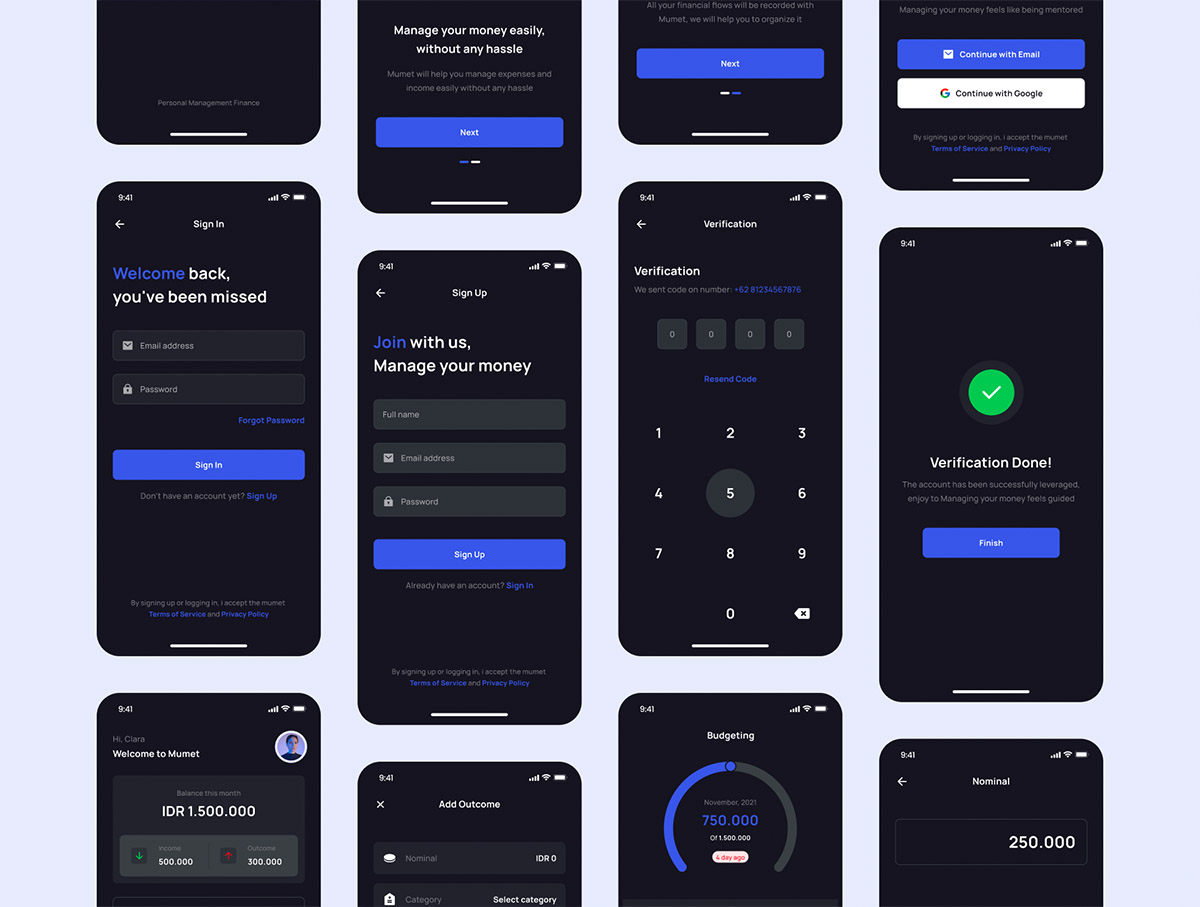 30页明暗色金融财务管理App应用UI设计figma套件