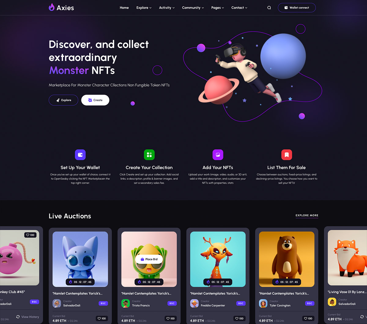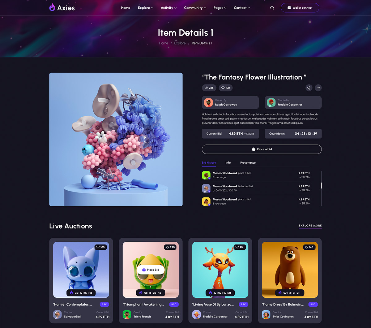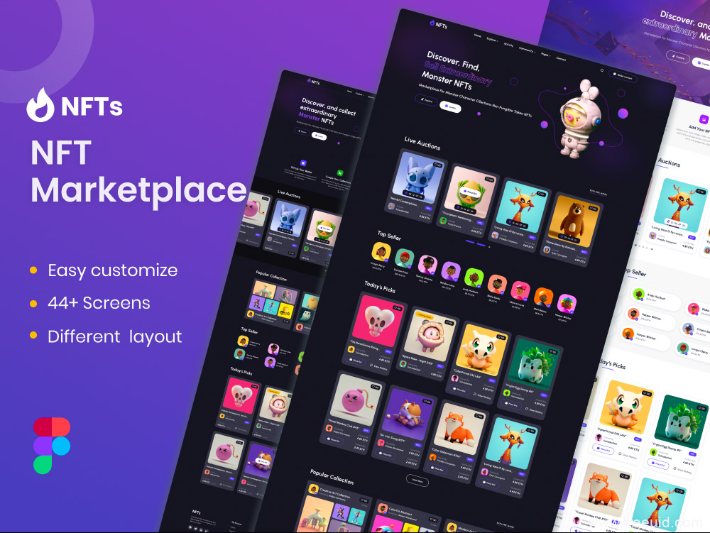 40页NFT虚拟交易市场整站UI界面设计套件figma模板