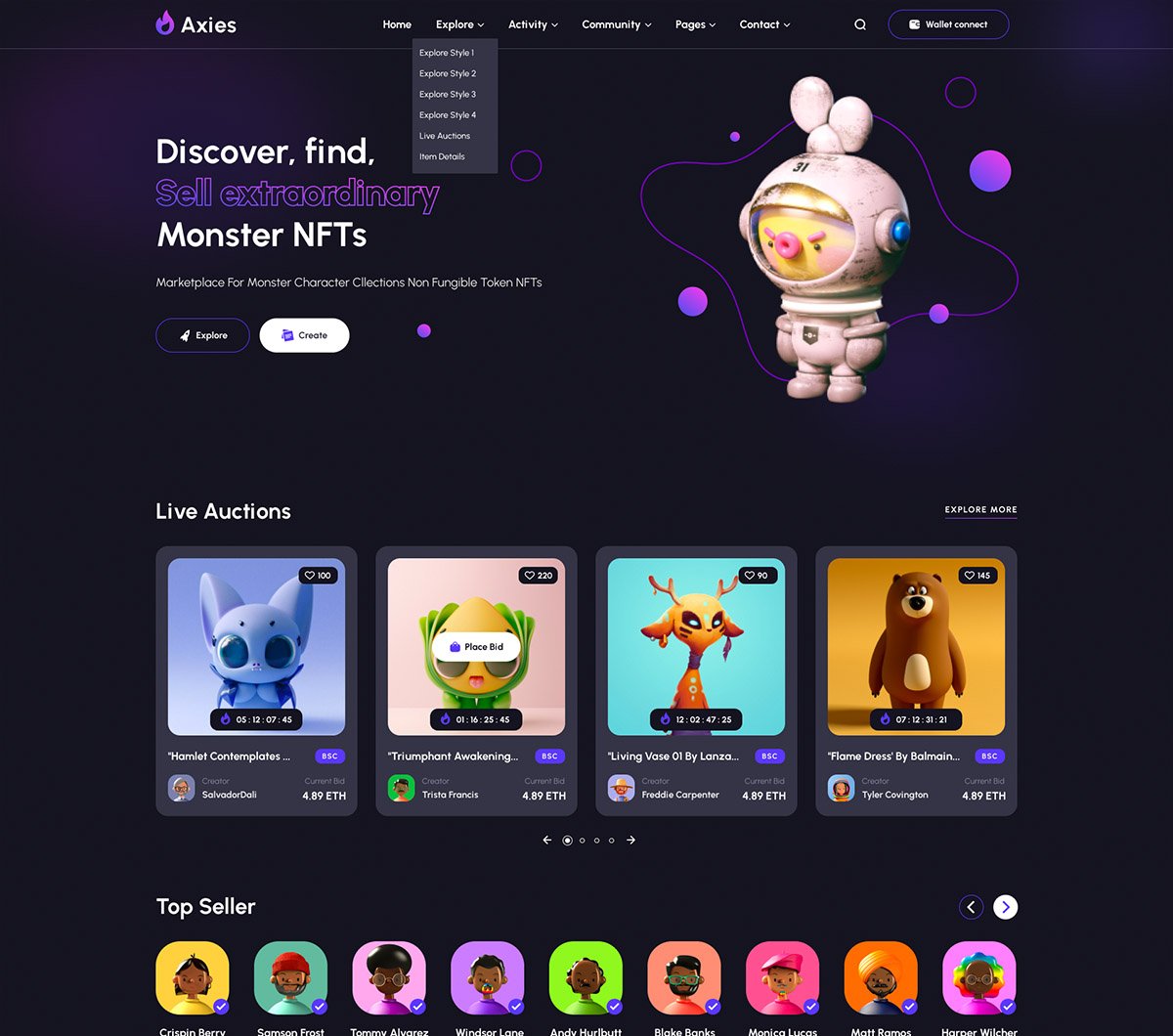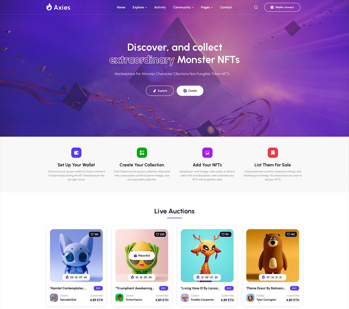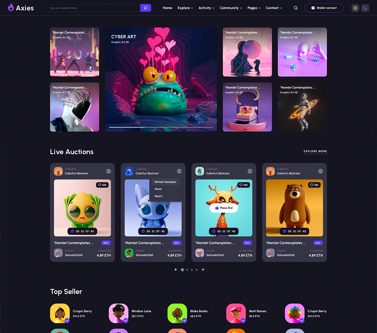 40页NFT虚拟交易市场整站UI界面设计套件figma模板