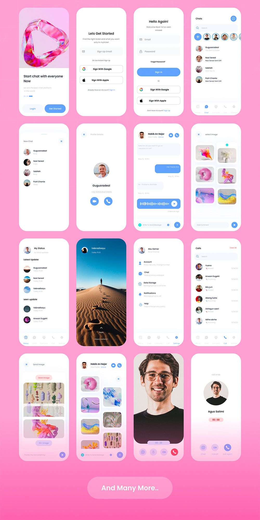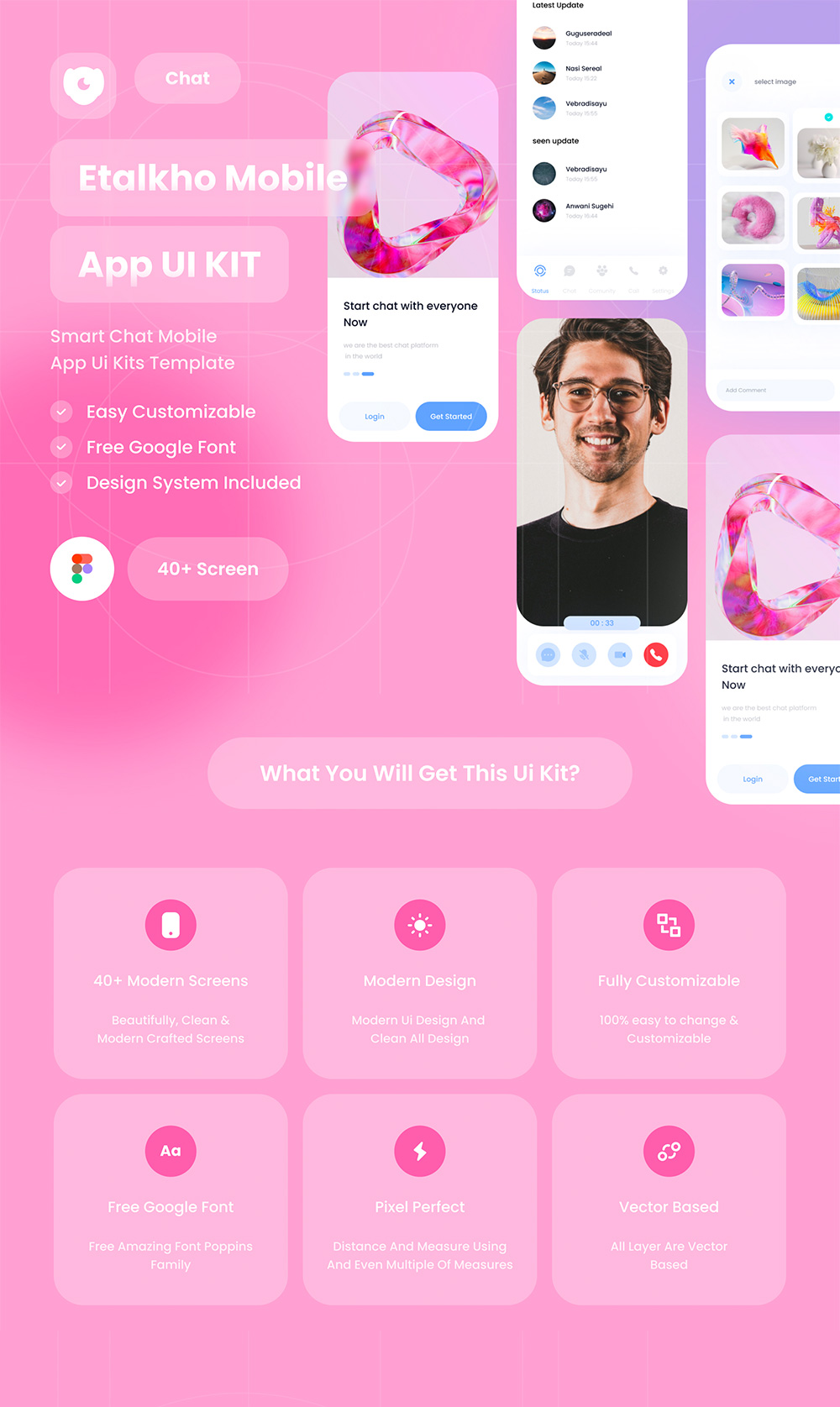 40页高保真聊天和视频通话信使应用程序app figma源文件