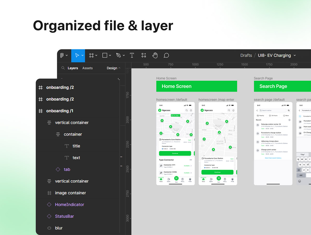 35页新能源汽车充电站app设计Sketch, XD, Figma, Invision Studio格式